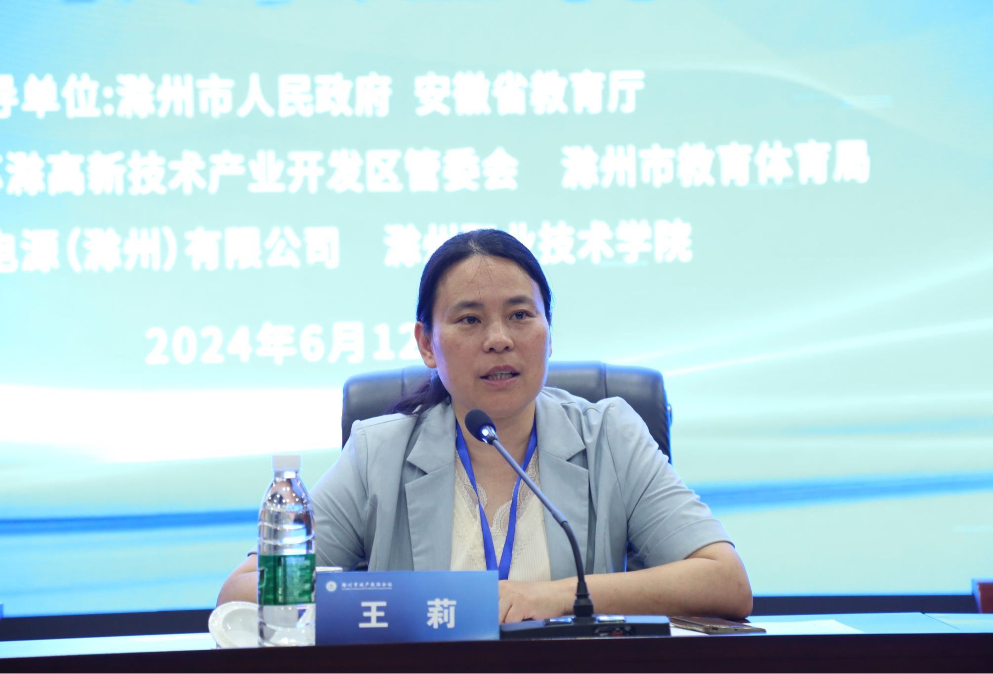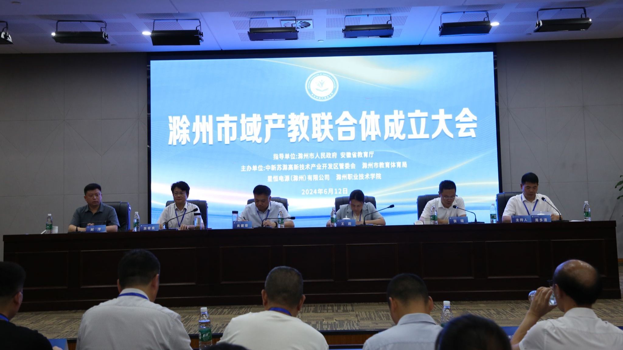 6月12日上午,滁州市域产教联合体成立大会在中新苏滁高新技术产业开发区管委会三楼会议室成功召开。省教育厅职业与成人教育处二级调研员肖建荣,市教育体育局副局长王莉,中新苏滁高新区党工委委员、管委会副主任张瑞,beat365在线唯一官网党委委员、副校长苏有良,星恒电源(滁州)有限公司副总经理刘洋等领导出席会议。