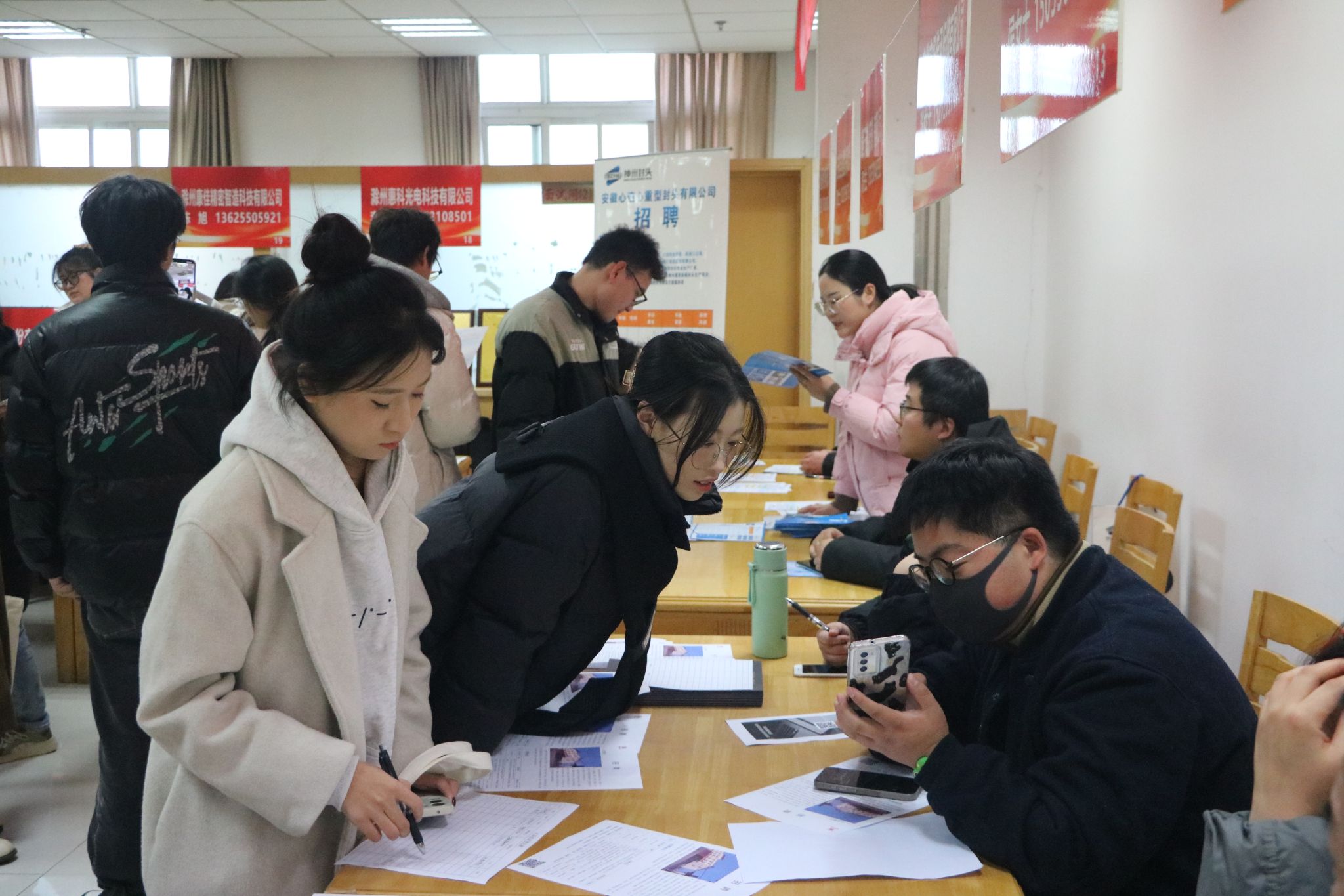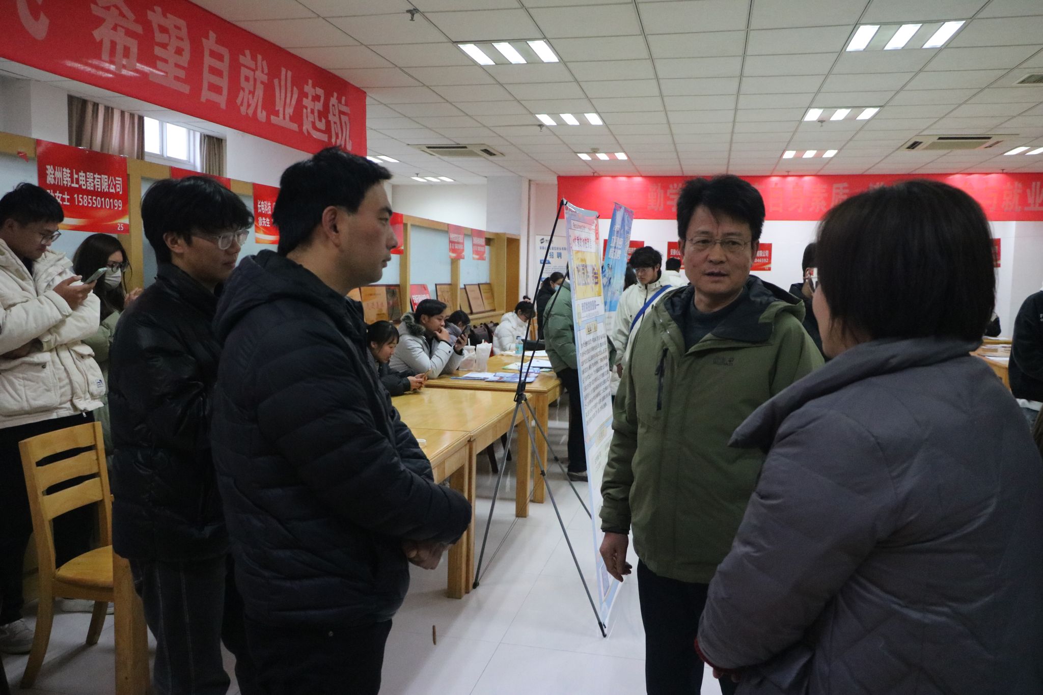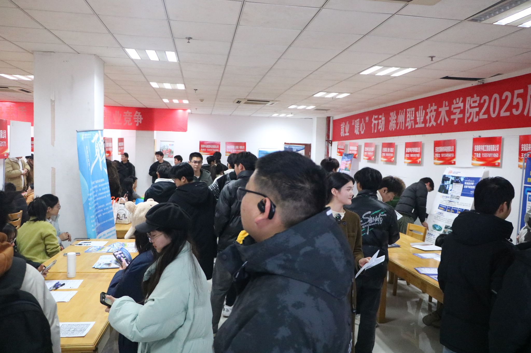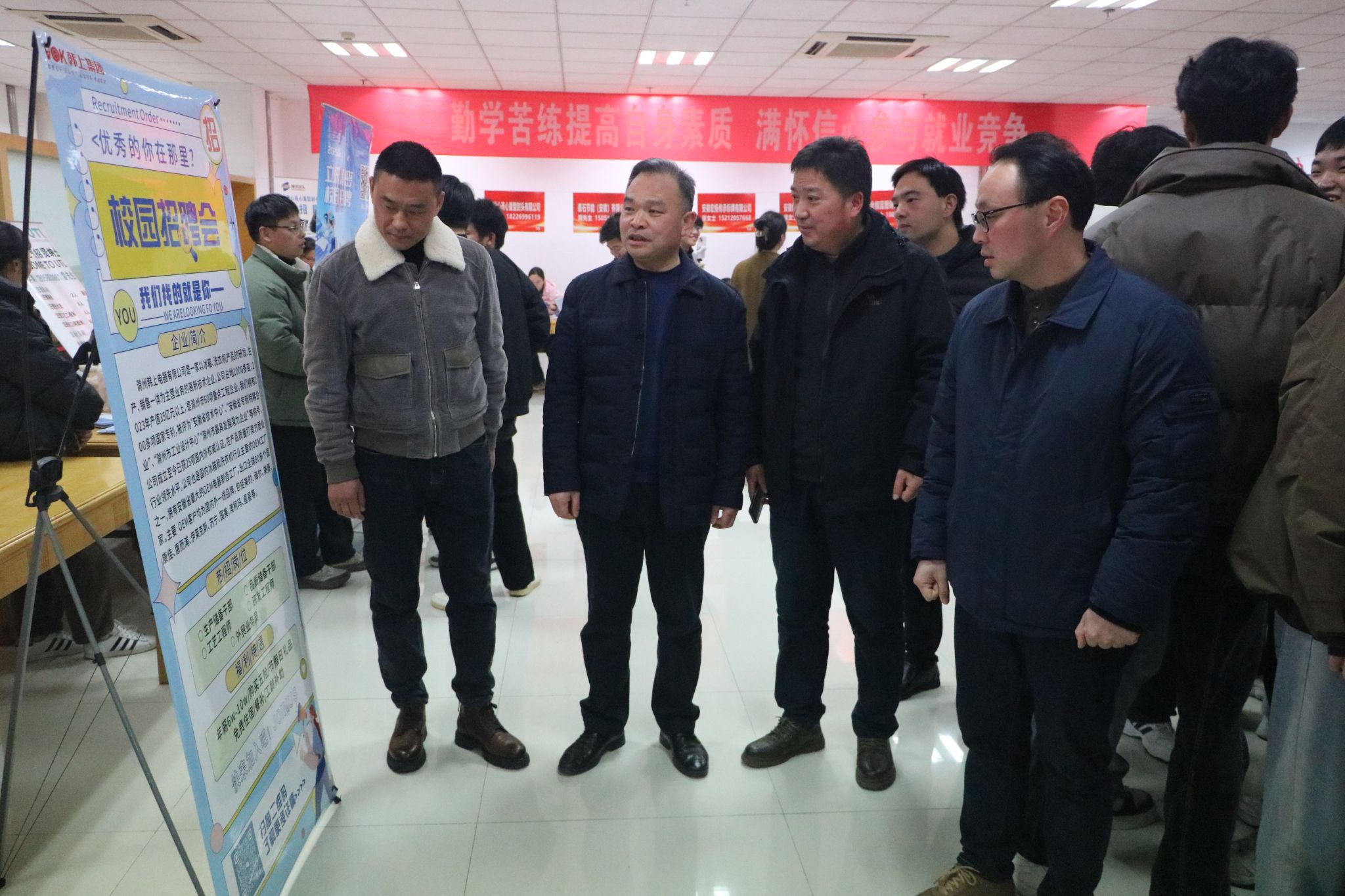 为学习贯彻党的二十届三中全会精神,搭建毕业生与用人单位沟通平台,12月20日,beat365在综合楼117大厅成功举办就业“暖心”行动——beat365在线唯一官网2025届毕业生冬季校园双选会。校党委委员、纪委书记孙静,校党委委员、副校长苏有良等校领导,滁州市公共就业服务管理中心主任王升、滁州市人力资源和社会保障局就业促进和失业保险科科长朱永波、滁州市公共就业服务管理中心副主任刁春元等市人力资源社会保障局领导现场指导。招聘会通过抖音平台同步直播。