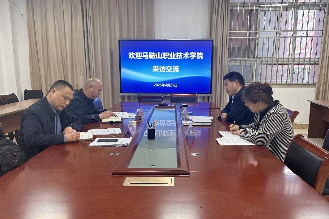 4月25日上午,马鞍山职业技术学院实验实训中心副主任孙明春、马有昂一行来beat365考察交流市域产教联合体申报建设等工作。校企合作办主任周多道和相关工作人员参与交流。