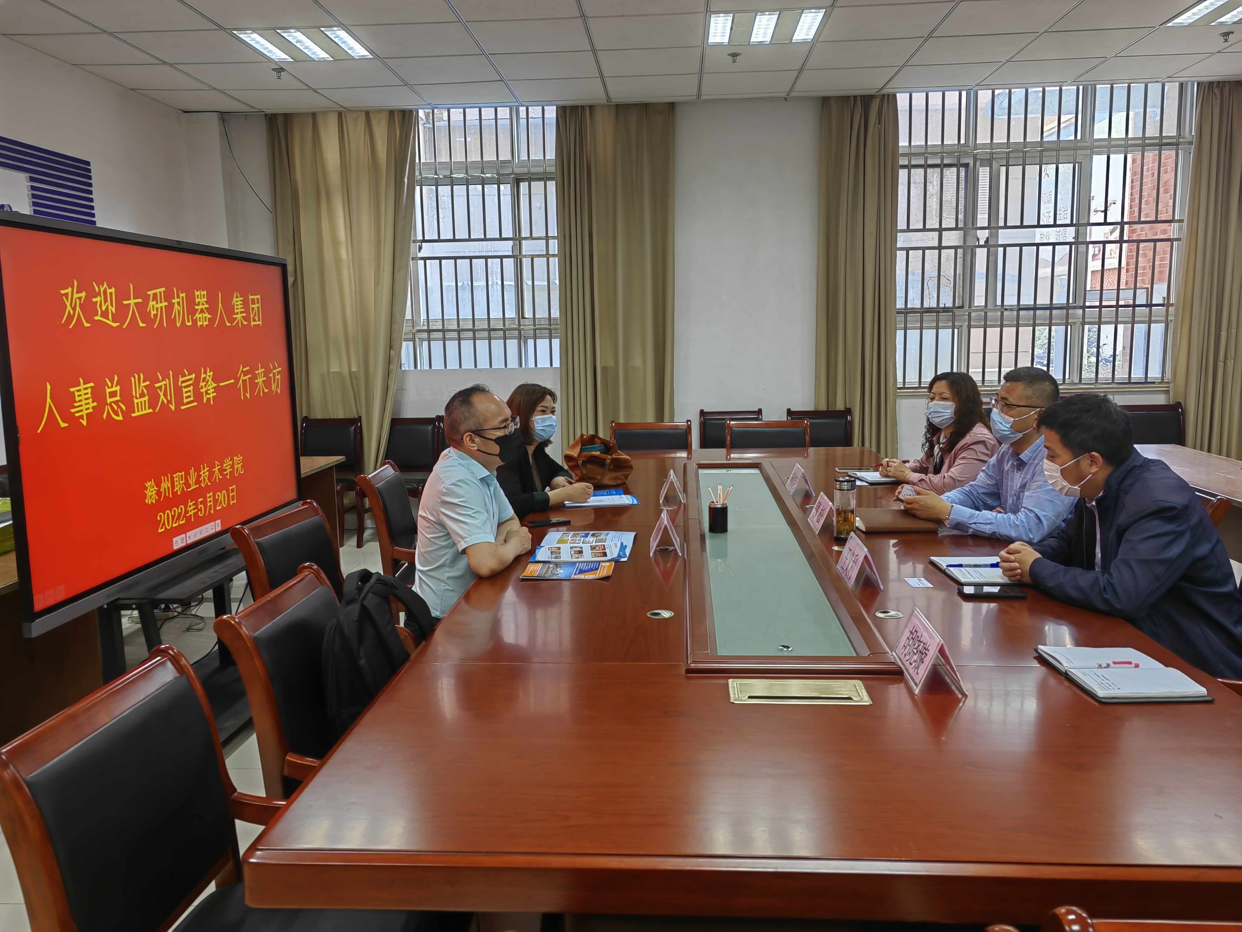 5月20日上午,大研机器人集团人事总监刘宣锋、大研机器人集团定远公司人事行政主管李霞等一行来beat365考察交流。校长助理、招生就业处处长穆松热情接待了刘宣锋一行,招生就业处副处长王义利及招生就业处相关人员参加了会议。