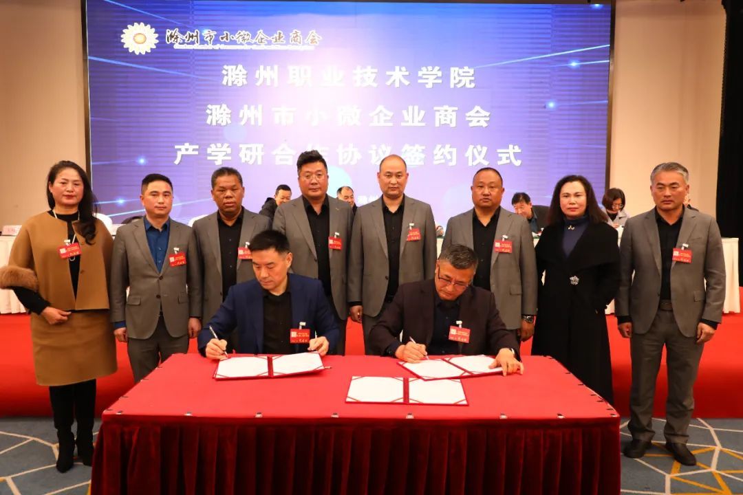 穆松代表学校与滁州市小微企业商会签订了产学研合作框架协议,并向商会颁发了beat365在线唯一官网产学研合作基地牌匾,穆松在讲话中指出,beat365作为地方型高水平大学,一直以来以立德树人为办学宗旨,以服务地方为办学导向,坚持走产教融合校企合作之路,积极探索教育教学改革,不断加强专业建设,提高人才培养质量,在推进校企协同育人等方面取得了丰硕成果,多年来为滁州市企业输送了大批高素质技能型人才,为滁州市经济快速发展提供了强大的人才支持。穆松表示,正值新职业教育法颁布,此次与滁州市小微企业商会签约是落实“科教兴国”战略的有力体现,一方面有利于深化产教融合校企合作,提升人才培养质量,为beat365学生在滁实习就业提供广阔的平台;另一方面为滁州市小微商会里120余家小微企业提供人才智力支持,帮助小微企业快速成长,形成双方互利共赢的美好局面。