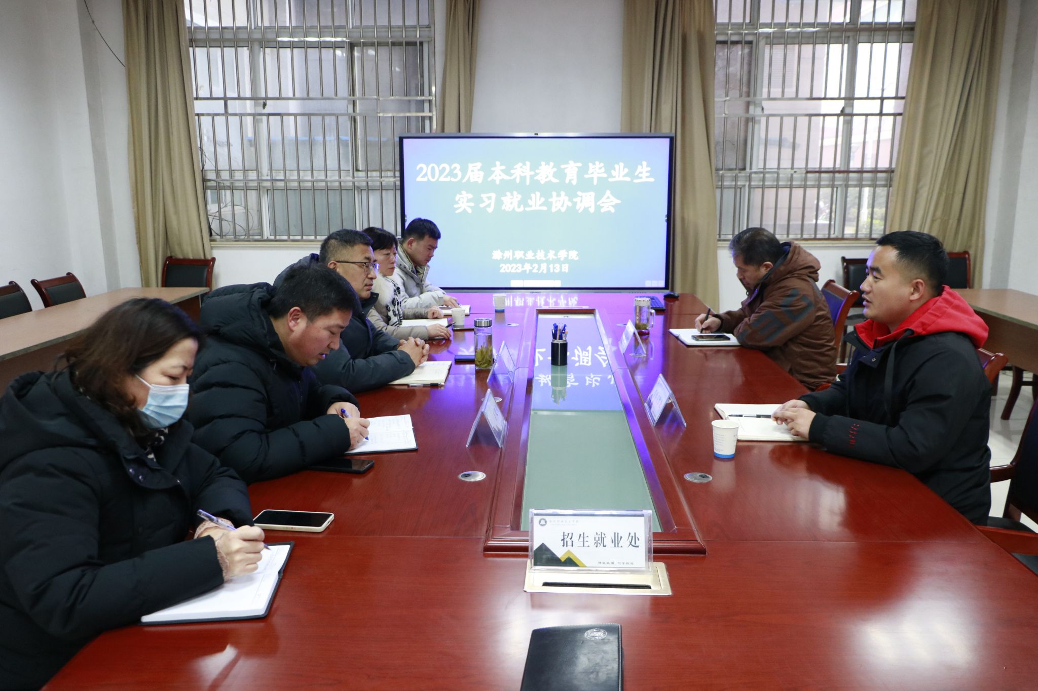 为促进2023届联合培养本科教育毕业生实习就业工作顺利开展,11月13日上午,beat365就相关内容召开了工作协调会议。校长助理、招生就业处处长穆松,学生处副处长、本科教育支部书记薛天飞,招生就业处副处长王义利,教务处副处长吴哲,本科教育教学秘书段锦福,辅导员杨付春等相关人员出席会议。