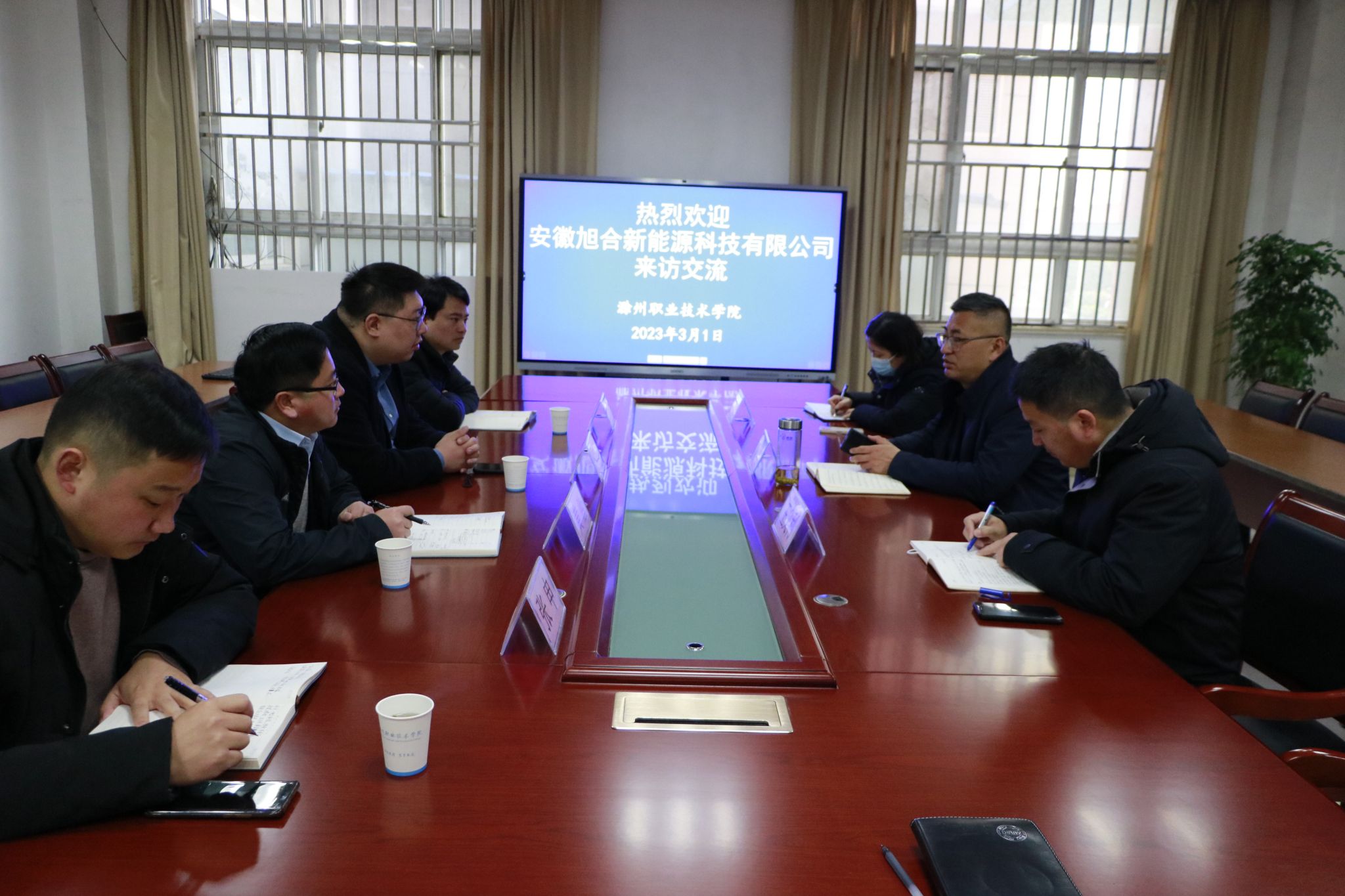 3月1日,安徽旭合新能源科技有限公司人事行政中心总监韩宜辰、高级人事经理黄胜等一行在苏滁人力资源公司总经理张健的陪同下来beat365洽谈校企合作相关事宜。校长助理、招生就业处处长穆松,招生就业处副处长王义利及相关同志参加会议。