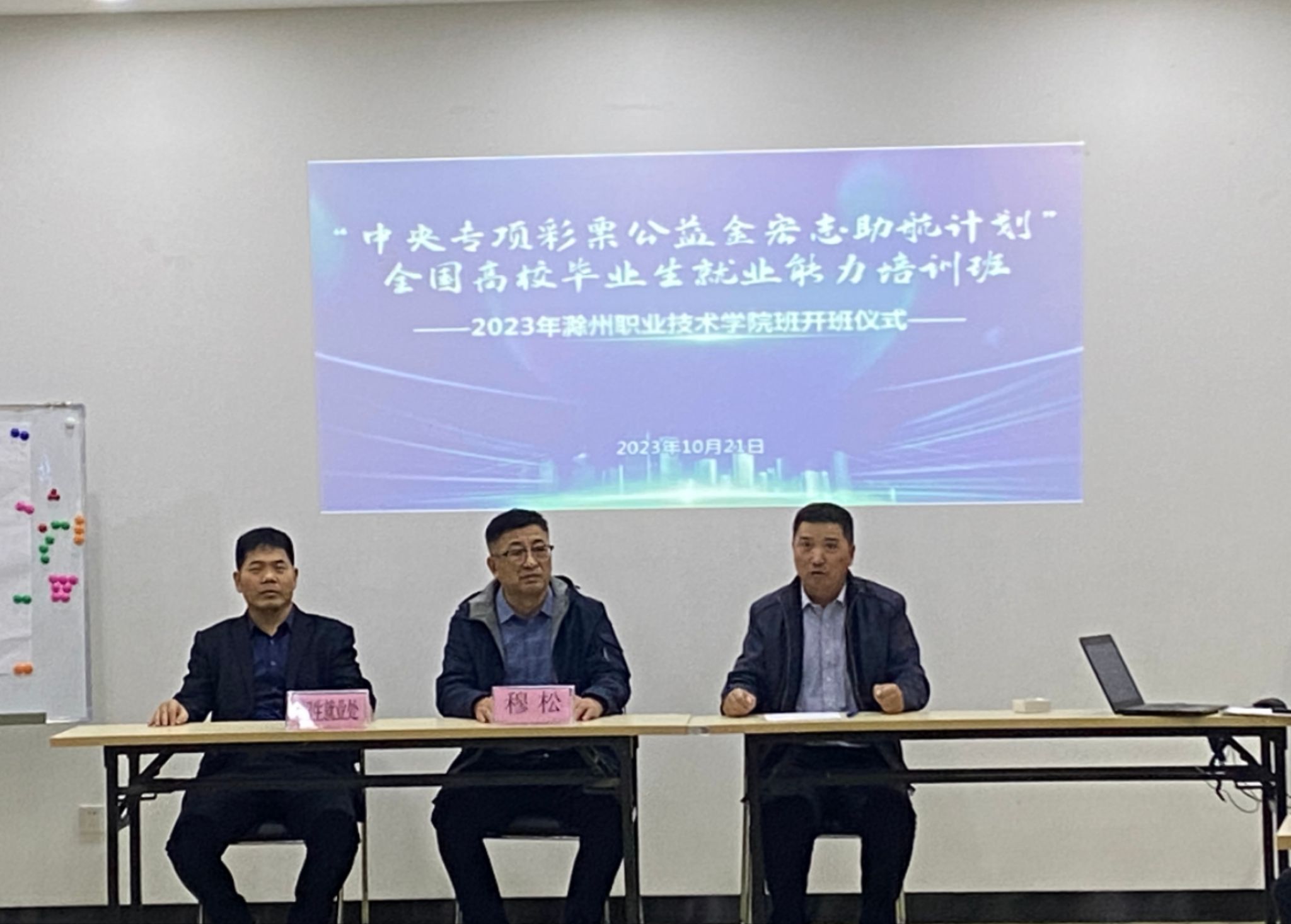 10月21日,“中央专项彩票公益金宏志助航计划”全国高校毕业就业能力培训班2023年beat365在线唯一官网班开班仪式在学校大学生创业孵化基地216培训室举办。学校校长助理穆松出席开班仪式并讲话。招生就业处相关人员、所有参训学员参加了开班仪式。