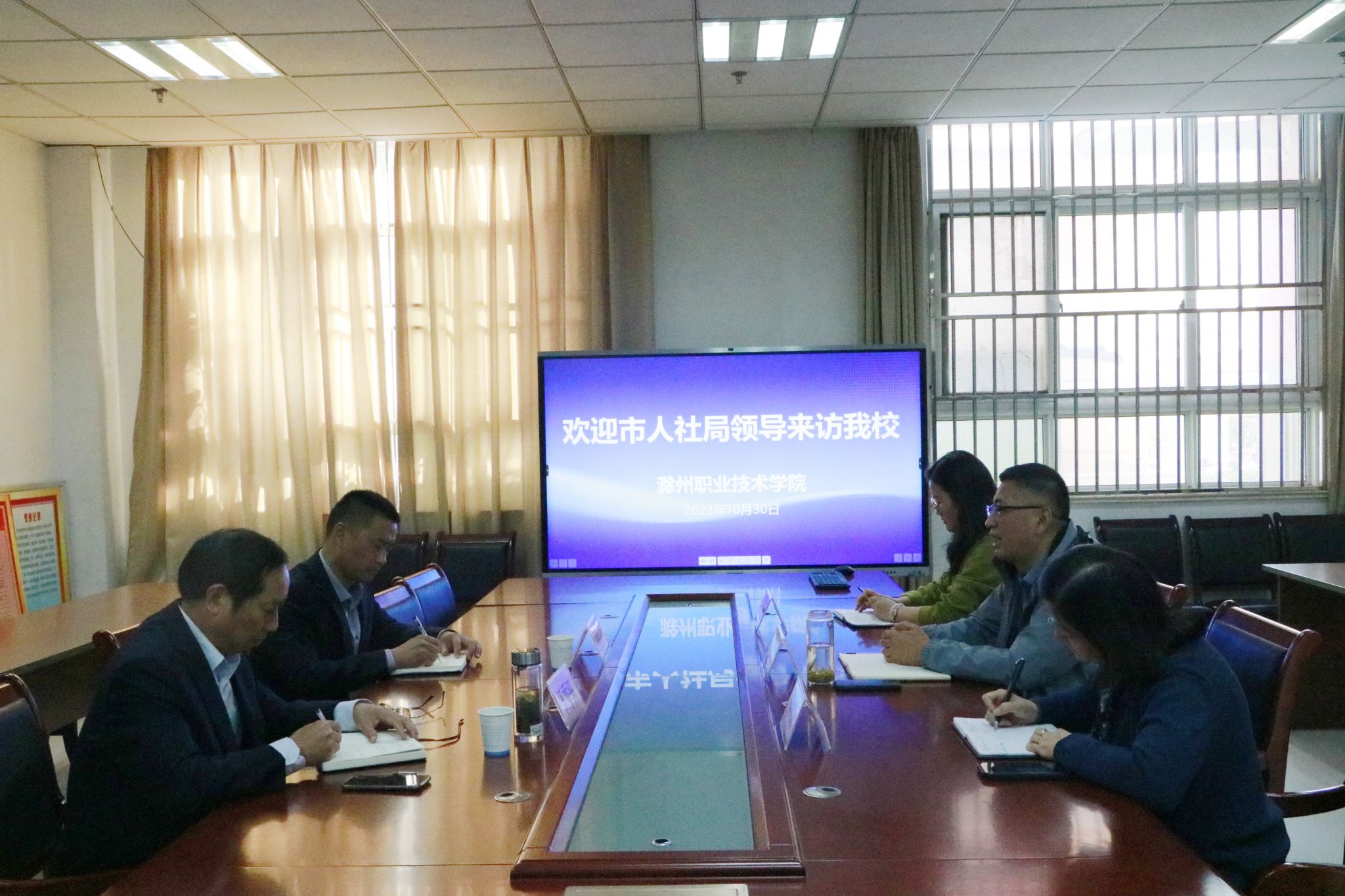 10月30日,滁州市人社局公共就业服务管理中心副主任于秀平、就业服务科科长刁春元一行来访beat365,就秋季校园招聘、校政合作等相关事宜,校长助理、招生就业处处长穆松等人热情接待。