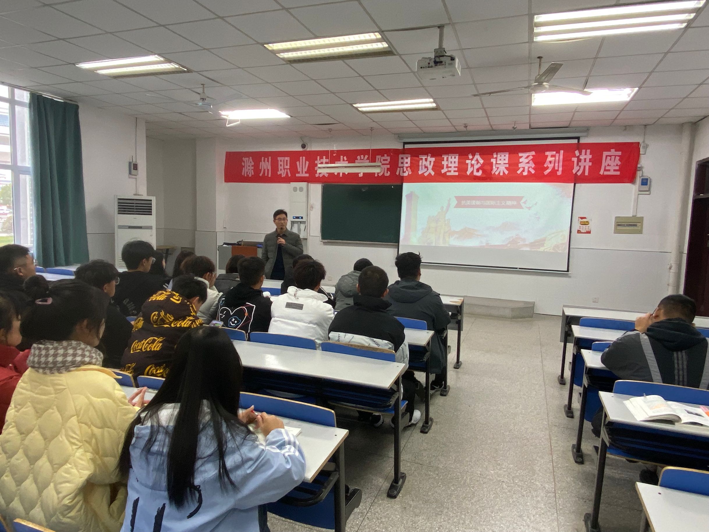 11月22日,马克思主义学院思政理论课教师汪立超副教授在1102教室为2021级学生开展了“抗美援朝与国际主义精神”学术讲座。