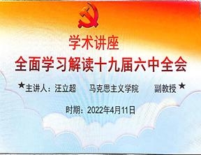 4月11日,马克思主义学院思政理论课教师汪立超副教授通过“超星学习通”为2021级学生在线直播“全面学习解读党的十九届六中全会精神”学术讲座,这是马克思主义学院常态化长效化开展党史学习教育的具体举措,同时也是进一步推动“疫情期间思政励志教育课”的深入开展的具体行动。