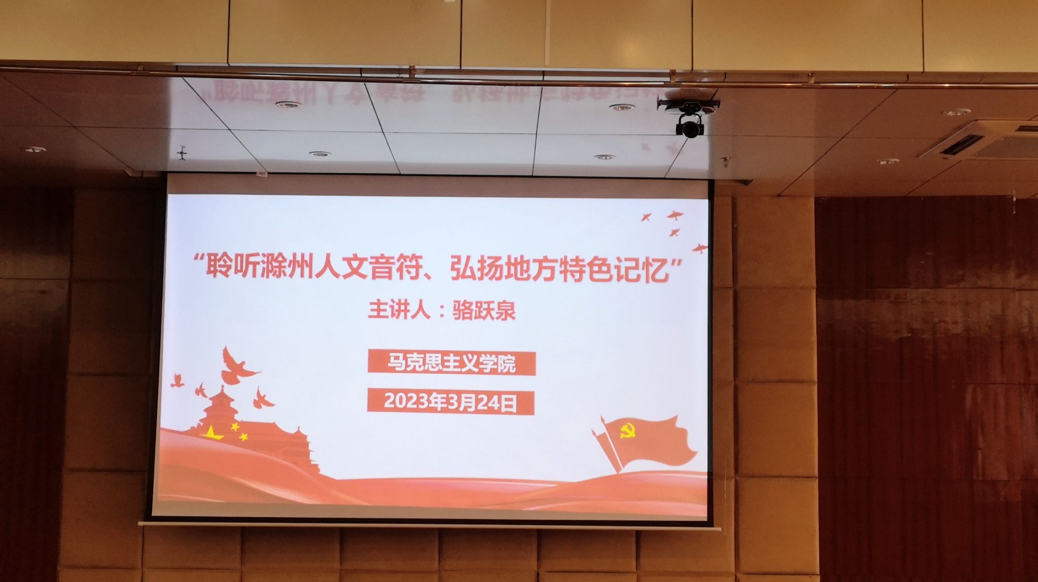 为深入了解滁州文化特色,传承弘扬优秀传统文化,更好的将滁州本土文化融入到思政教学中,3月24日,滁州市地情人文研究会副秘书长、滁州市委党校行政处长骆跃泉受邀来beat365进行“聆听滁州人文音符 弘扬地方特色记忆”专题讲座,讲座地点设在综合楼1101会议室,讲座由马克思主义学院副院长张家莉主持,全体专兼职思政教师参加。