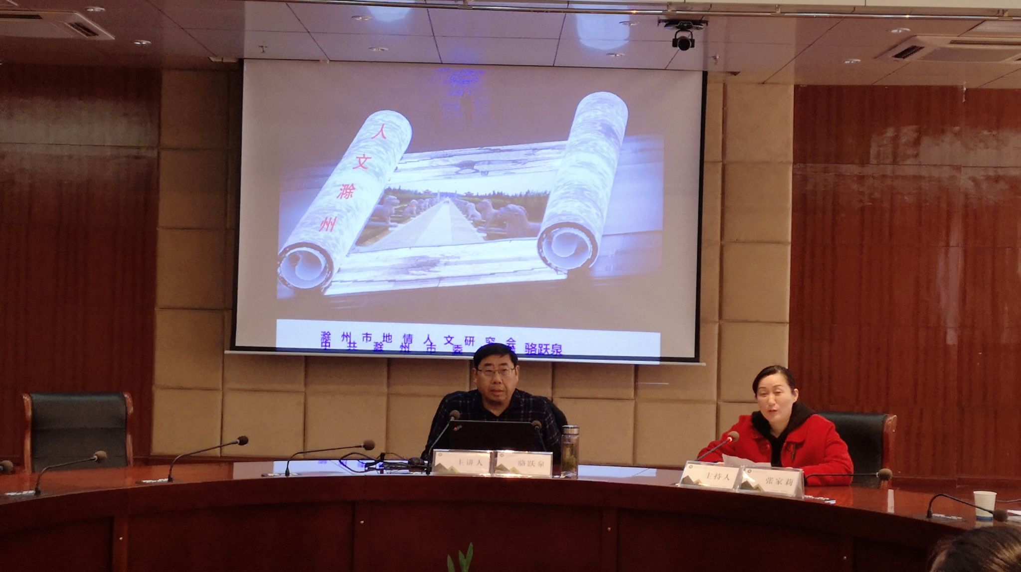 骆跃泉,滁州市地情人文研究会副秘书长、滁州市政协特约文史研究员、滁州市地名命名专家顾问组成员、滁州电视台特约访谈嘉宾、市委党校行政处长。业余时间长期致力于滁州地方文史研究,撰写的《我爱滁州系列》六十多篇文章引起多方关注,很多篇章被广泛转载,成为了解滁州人文的一张名片。多篇文史类研究文章发表在报纸、杂志等公开媒体;多次参与滁州城市外宣专题节目创作;多次参与城市道路、桥梁命名;多次参加滁州市文化类建设项目规划、评审;市纪委《镜园廉政文化导读》一书执行主编。本次讲座骆跃泉从“人文轨迹”“人文亮点”“文化品牌”三个方面进行具体讲解,首先对“正月十六走太平”“浮山堰遗址”“滁州西涧”“沙河”“醉翁亭”等滁州知名景点与传统习俗的历史渊源做了详细的介绍;其次盘点了“龙兴三大王朝”“三座文化高峰”“四次人口迁移”三大滁州人文亮点;最后介绍了“仁政文化”“士林文化”“皇城文化”“军事文化”四大滁州文化品牌。