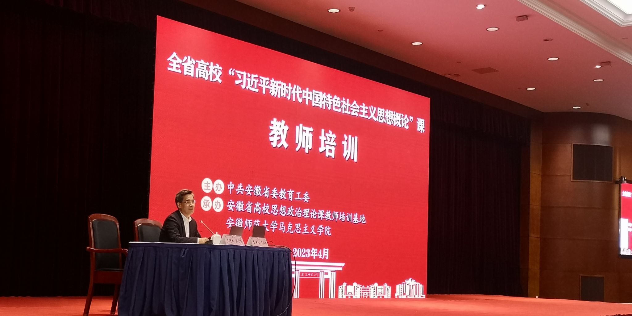 本次培训内容丰富,安排紧凑,注重实效,师资层次高,在短短两天时间内共安排了六场高质量讲座,分别是清华大学马克思主义学院教授、博士导师艾四林主讲的《中国式现代化理论》 ;南开大学马克思主义学院院长、教授、博士生导师刘凤义主讲的《经济高质量发展(线上)》 ;安徽师范大学马克思主义学院教授、博士生导师张正光主讲的《思政课教师的教学艺术与教学方法》 ;同济大学马克思主义学院副院长、教授、博士生导师刘勇主讲的《构建人类命运共同体》 ;南京师范大学马克思主义学院院长、教授、博士生导师王刚主讲的《坚持和加强党的全面领导》 ;南京大学马克思主义学院院长、教授、博士生导师胡大平主讲的《习近平新时代中国特色社会主义思想的世界观与方法论》 。