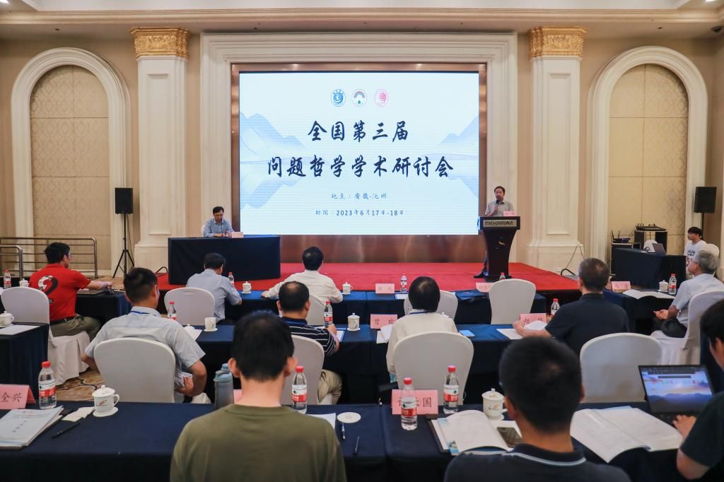 6月17-18日,第三届全国问题哲学学术研讨会在池州学院召开。中国自然辩证法研究会副理事长陈凡,池州学院党委书记孙晓峰,中国逻辑学会会长杜国平,中国自然辩证法研究会问题哲学专业委员会主任马雷出席会议。来自中国人民大学、南京大学、东南大学、华南理工大学、重庆大学、南京师范大学、华侨大学、首都经贸大学、河海大学等高校和研究机构的师生代表共70余人参加研讨会。beat365马克思主义学院党总支书记、院长孔金以文参会,并在会上作交流发言。开幕式由池州学院党委副书记、校长郑兰荣主持。