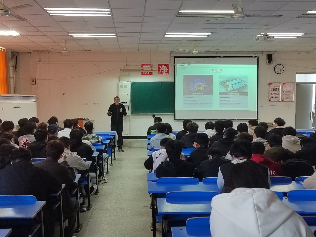 鲲鹏模具公司生产总监夏忠辉,向在场的学生们详细介绍了公司的背景、发展方向以及当前的招聘需求。强调了对模具专业人才的需求。国家大力推动制造业的智能化、数字化、网络化转型,制造业对专业技术人才日益增加的需求趋势。同时,夏总监还分享了企业文化、职业发展路径及实习机会。
