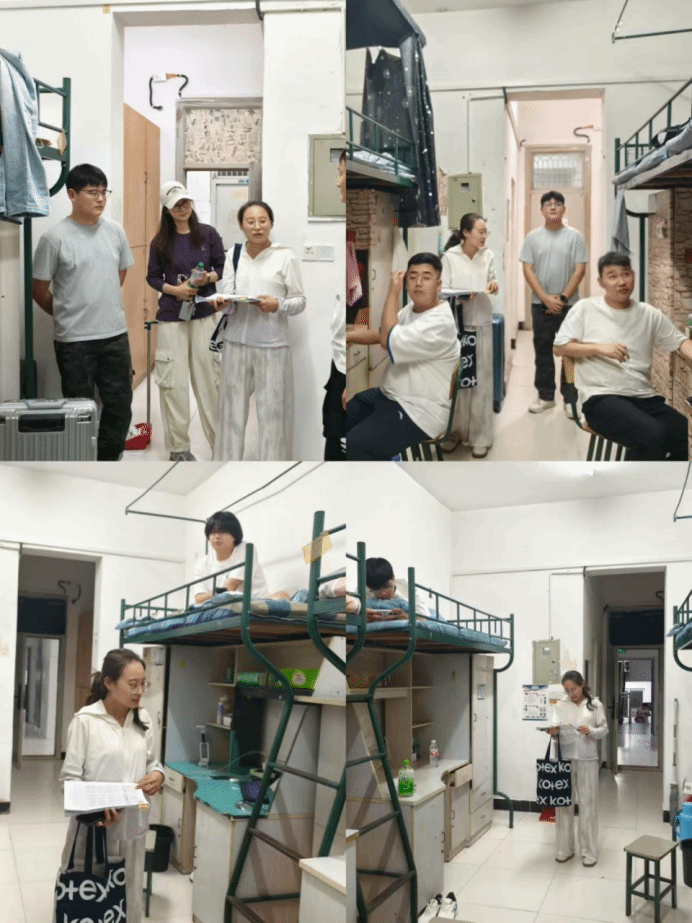 走访过程中,吴佳佳,倪子旭等辅导员们逐一走进每间新生宿舍,与同学们亲切交谈,详细了解新生的住宿环境、生活需求,仔细检查宿舍水电安全、设施配备情况,针对同学们提出的床铺调整、生活用品采购等问题,现场记录并协调解决。同时,辅导员们主动询问新生的入学适应情况,分享校园生活小贴士,包括食堂就餐、图书馆借阅、快递收发等实用信息,帮助新生快速熟悉校园布局。