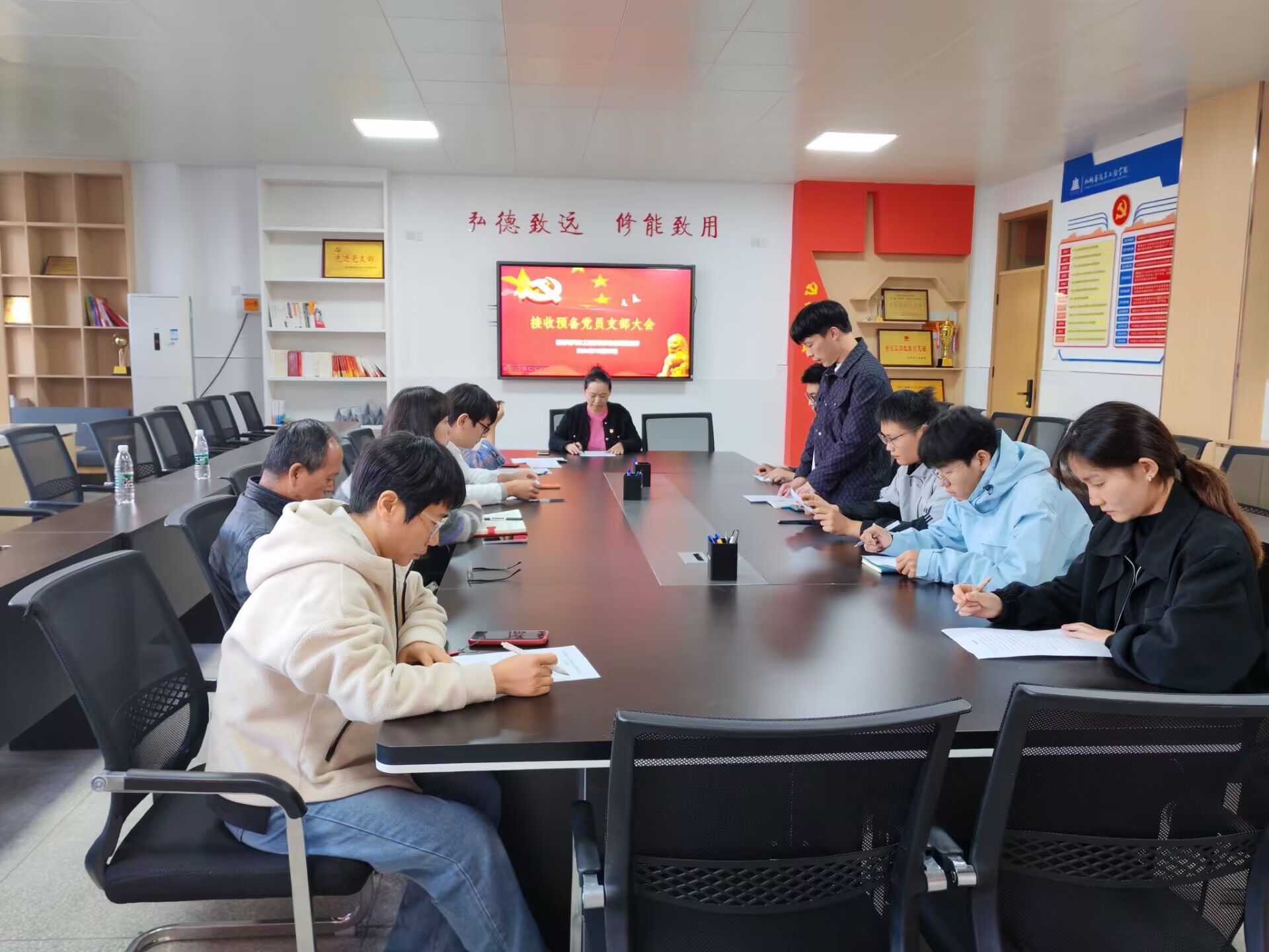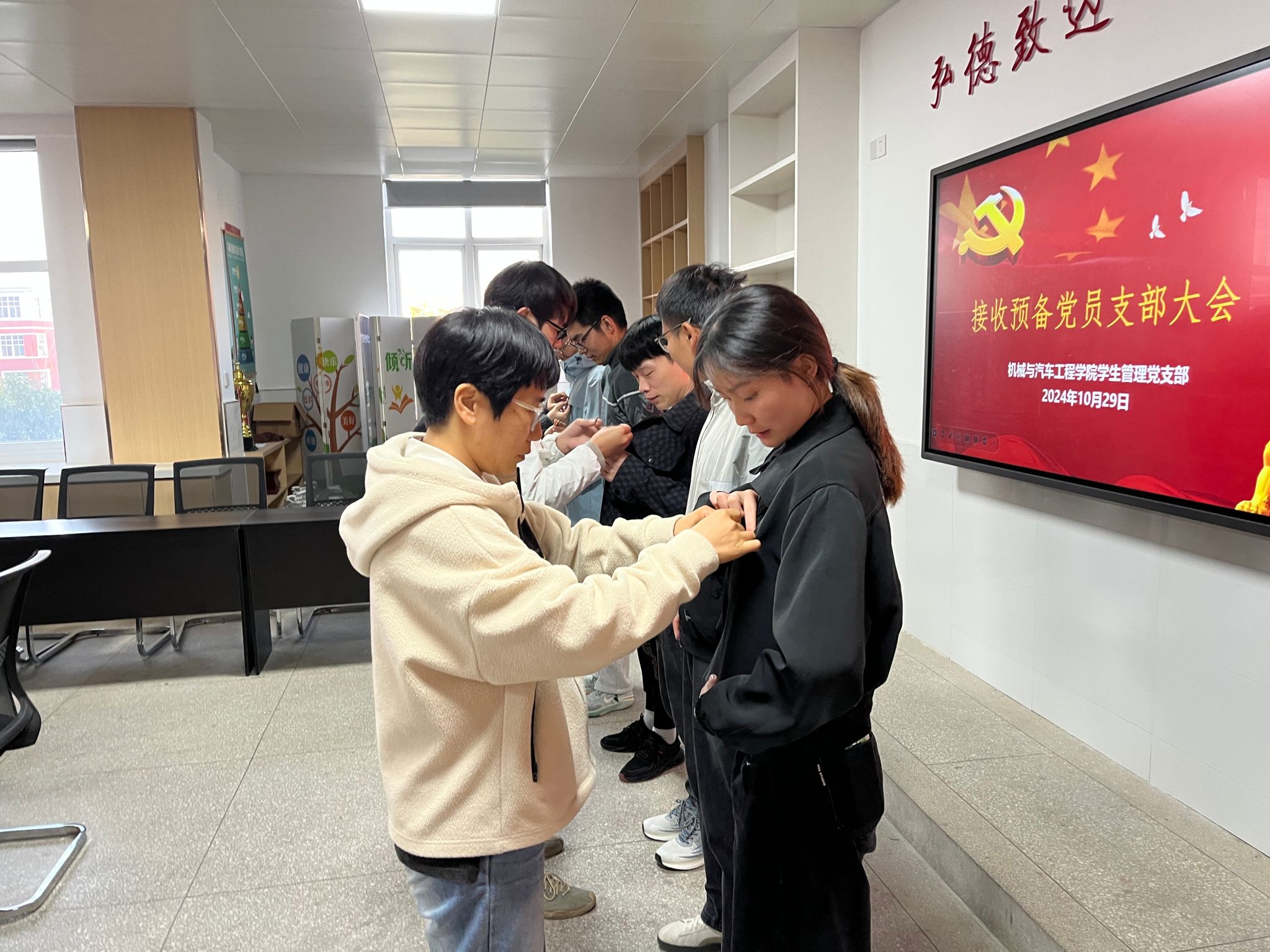 2024年10月29日下午,机械与汽车工程学院学生管理党支部于5210会议室召开接收预备党员支部大会,学生支部7名正式党员和5名发展对象参加会议,会议由学生管理党支部书记倪子旭主持。