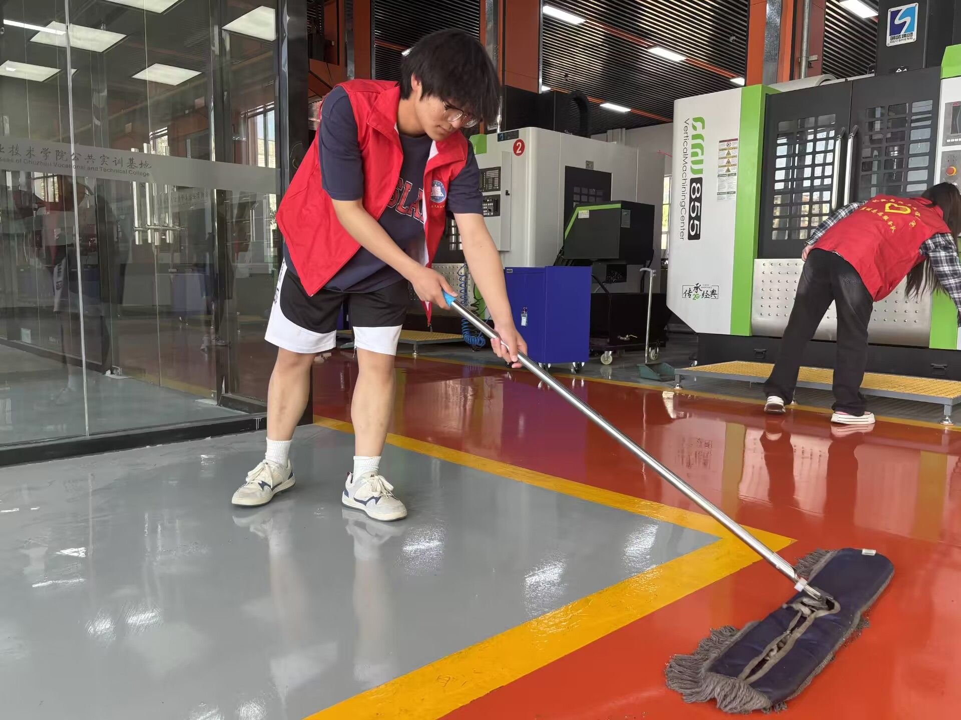活动当天,志愿者们分为多个小组,对实训车间的各个角落进行了全面清理。他们手持簸箕、扫把、拖把等清洁工具开展清理活动。在活动现场,志愿者们发扬团结协作、无私奉献的精神,积极主动地清理垃圾、打扫卫生,为实训车间环境的改善贡献一份力量。