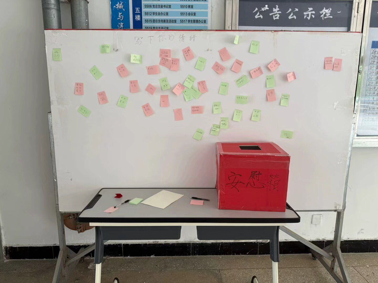 活动现场,洁白的“心情板”如同一片柔软的云端,静静伫立。同学们纷纷拿起色彩温暖的便利贴,将积压心底的压力、难以释怀的心结,或是生活中偶遇的阴霾,化作真诚的文字。一笔一画的书写,是情绪的释放,也是自我梳理的过程。身旁“安慰箱”满是治愈话语卡片,凝聚心意,如春日暖阳驱散阴霾。