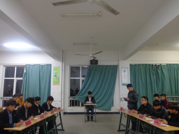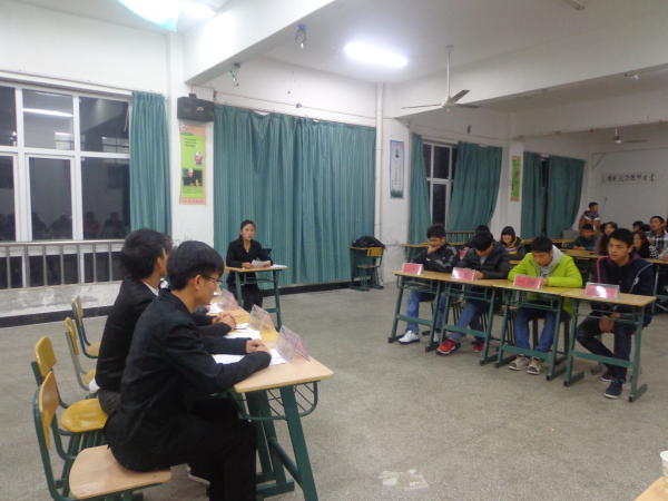 2013年11月27日晚,汽车系新生大专辩论赛分别在5212、5213教室同时展开。本次比赛由实践部主办,汽车系学生会主席李斯亮、副主席徐跃光以及各部部长作为评委参加了这次赛。