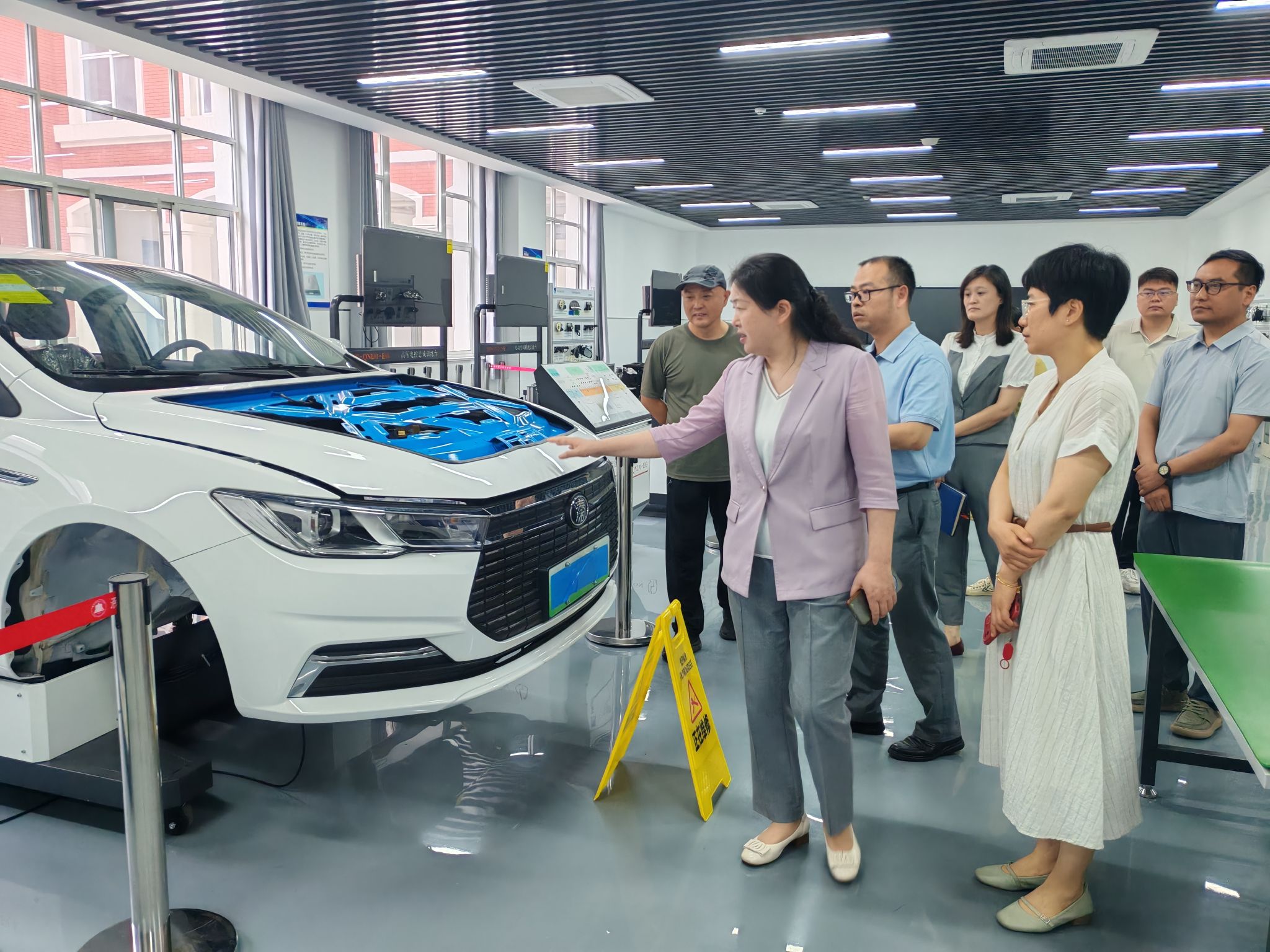 陈飏一行首先前往6号楼新能源与智能网联汽车实训中心,实地考察实践教学环境,详细询问实训课程设置、实验室使用频率、教学内容与产业技术前沿的衔接情况。对实训中心先进的硬件设施与创新实践教学模式,陈飏给予充分肯定。