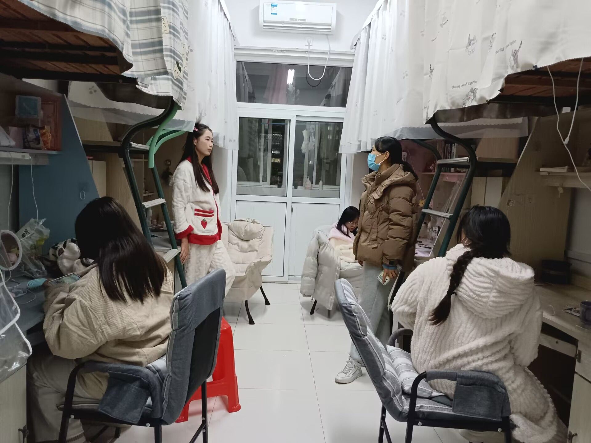 走访期间,两位老师认真查看了各个宿舍的卫生及人员在校情况,向同学们传达了学校关于疫情防控工作的最新政策和要求,询问同学们学习、生活情况和存在的问题,勉励大家珍惜时间,上好网课,及时复习迎接期末考试。