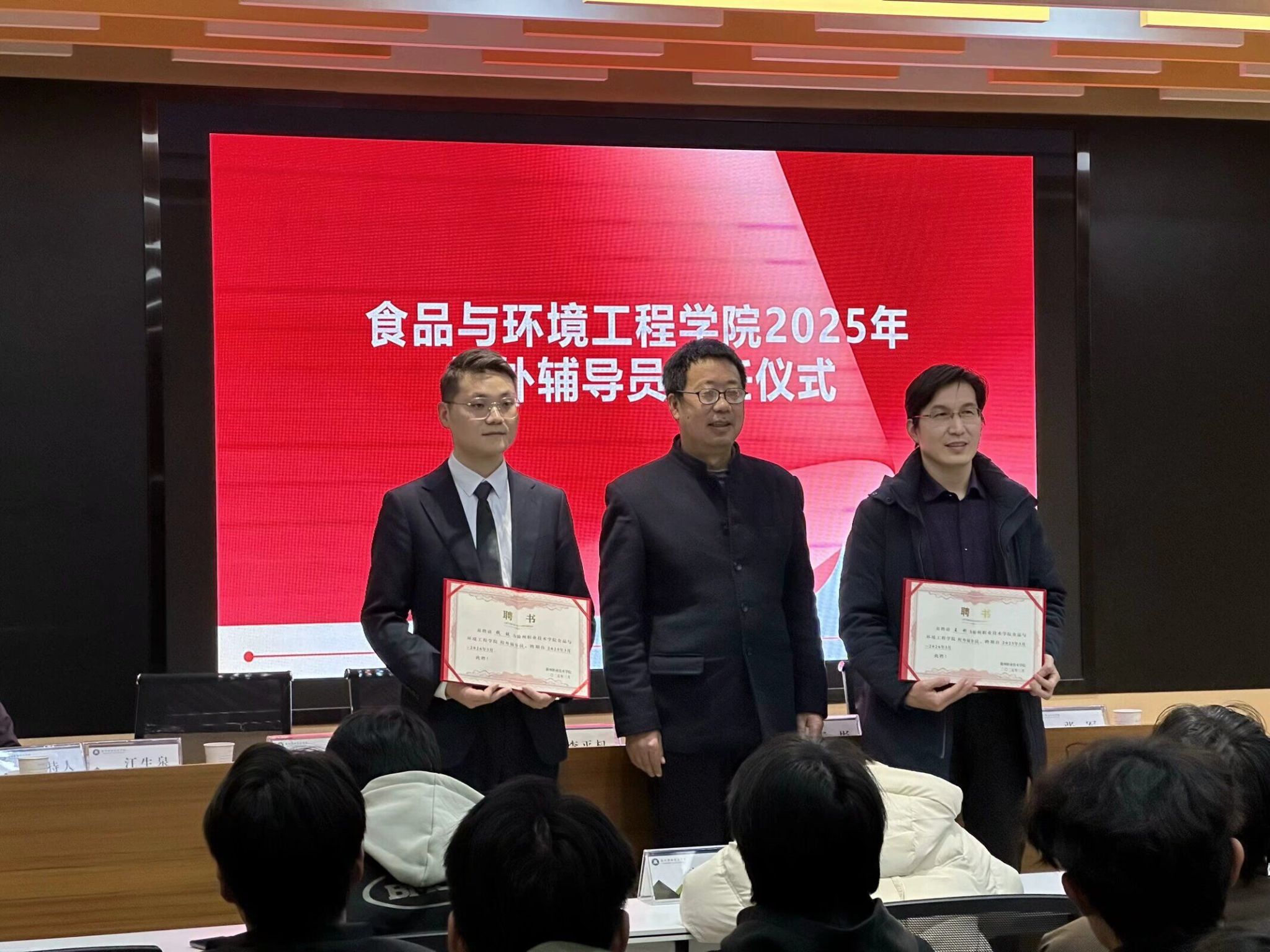 校党委委员、工会主席李平权,校学生工作处处长张军,食环学院党总支书记张功会,受聘校外辅导员、学院专职辅导员及学生代表共同参加了聘任仪式。仪式由学院党总支副书记江生泉主持。此次聘任是食环学院进一步推进协同育人、加强学生思政教育工作的重要举措。