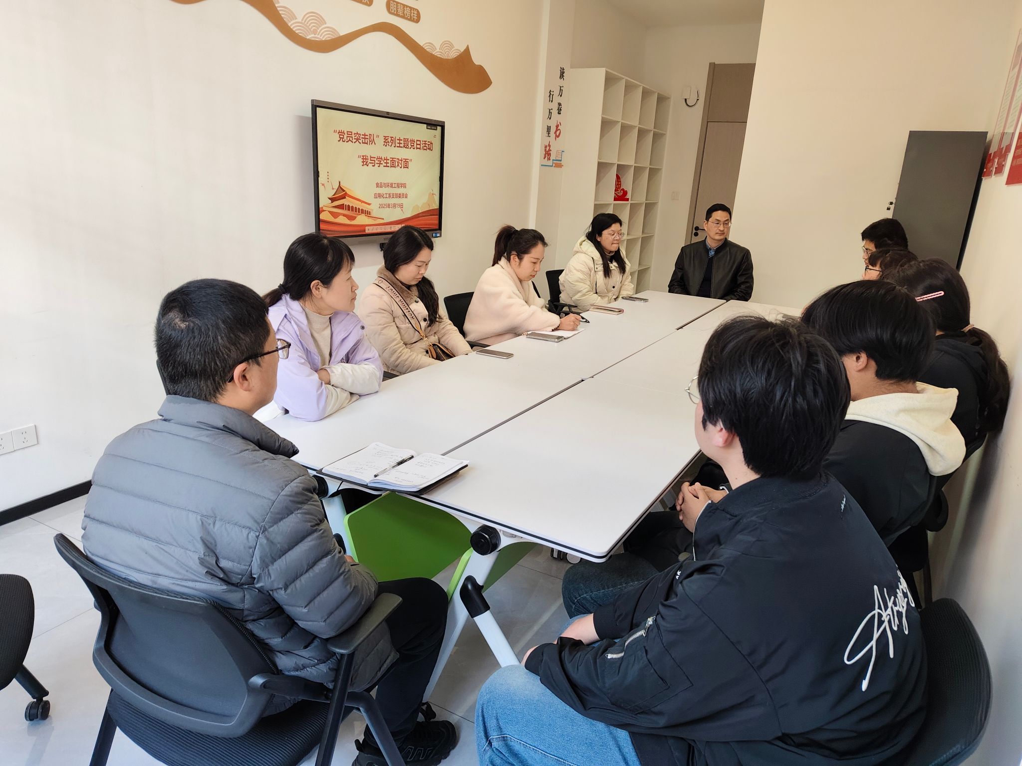 3月19日下午,食环学院应用化工系党支部深入“丰乐驿站”与本专业学生代表面对面,了解学生学习、生活情况,尤其是对教师课堂教学的意见建议。活动由党支部组织委员吴越主持。