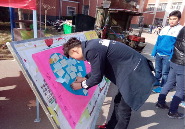11月26日上午,食品系花艺社主办的“情系暖冬”感恩主题活动在宿舍区展开。活动通过“给远方的他(她)写一封信”、“送老师一支康乃馨”、“感恩留言墙”等形式,面向全院同学开展感恩教育。
