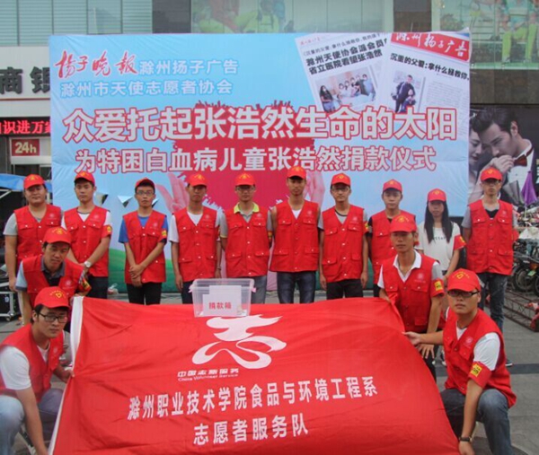 此次活动由滁州市天使协会发起,旨在为一名患白血病的小学生组织募捐,食品系志愿者分会派出了16名志愿者们参与活动的组织工作。活动从下午3点持续到晚上9点,现场募捐金额上万元,虽然很辛苦,但大家能为白血病儿童尽一份力感到高兴。