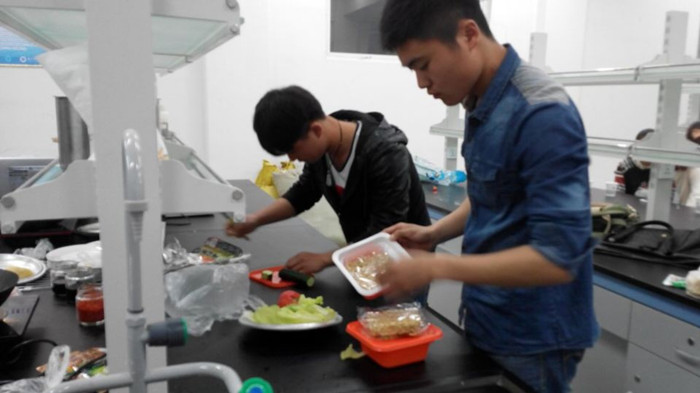 4月20日晚,由食品与环境工程系学生会主办的首届厨艺大赛在2101实训室正式举行,来自我系各个班级的12组选手30余人参加了此次厨艺比拼。食品教研室安晓婷老师应邀担任比赛的评委。