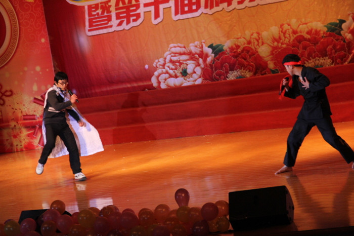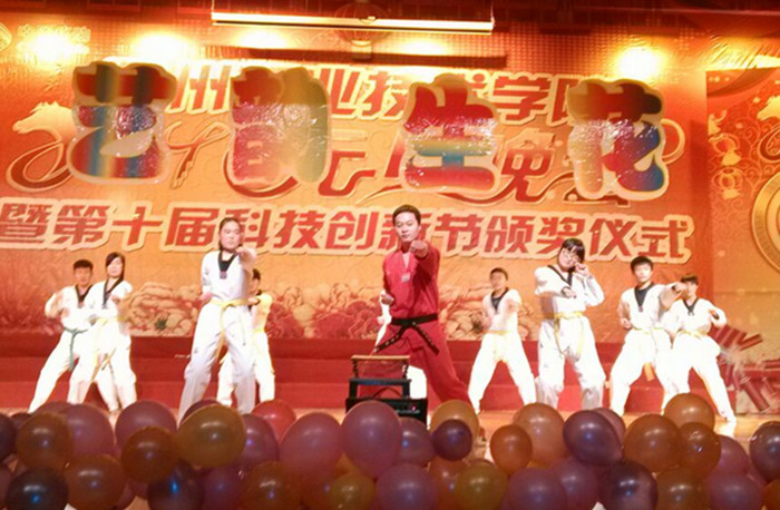 晚会伊始,生化系党总支书记陈震代表两系党政致新年贺词,对即将到来的2014年提出了新期待和新要求,并为全院师生送上了美好的新年祝福。随后,节奏欢快的《歌舞青春》正式拉开了此次元旦晚会的序幕,整场晚会节目丰富多彩:优美动听的歌曲《春泥》、神秘动感的《鬼步舞》、风趣幽默的小品《一决高下》、美艳绝伦的《印度风情》舞、高贵典雅的礼服秀《再聚》等无不让全场观众沉浸在美的享受中,而精彩的跆拳道表演更是挑动了全场观众的视觉神经,博得满堂彩。