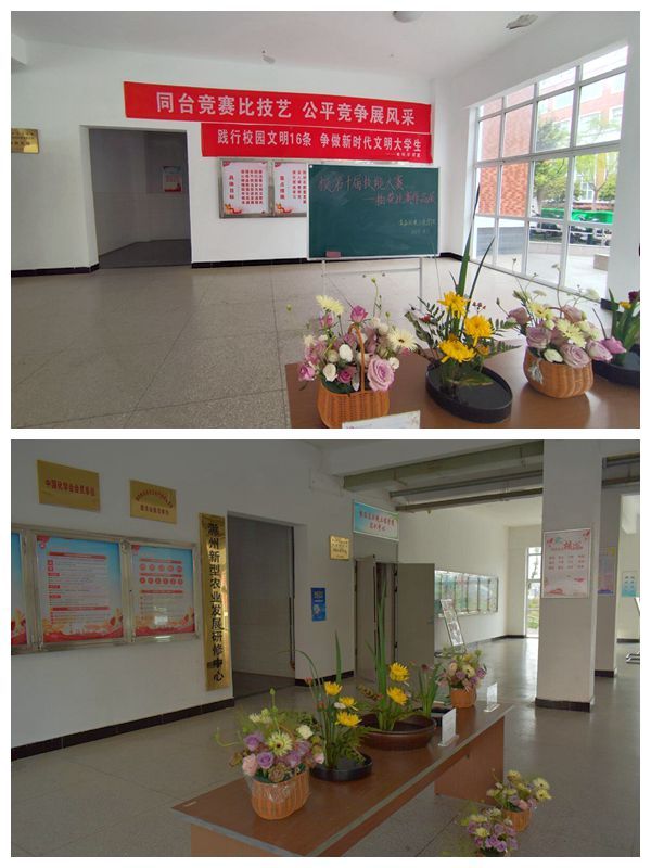 4月11日,食环学院在致善楼1楼大厅开展“校第十届技能大赛——插花比赛作品展”,此次作品展示由园林园艺系主办,院团总支学生会、院社团花艺社承办。