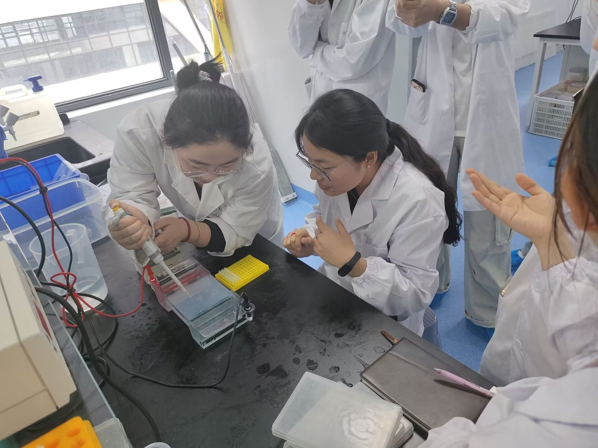 “分离-退火-延伸”三步操作步骤,4月1日,食环学院22通用生物订单班学生一手拿着微量注射器,一手操作离心管,熟练地完成了企业导师布置的生产、检测任务。在接下来为期一个月的时间里,22级通用生物班36名学生在滁州通用生物有限公司开展了实践教学活动。