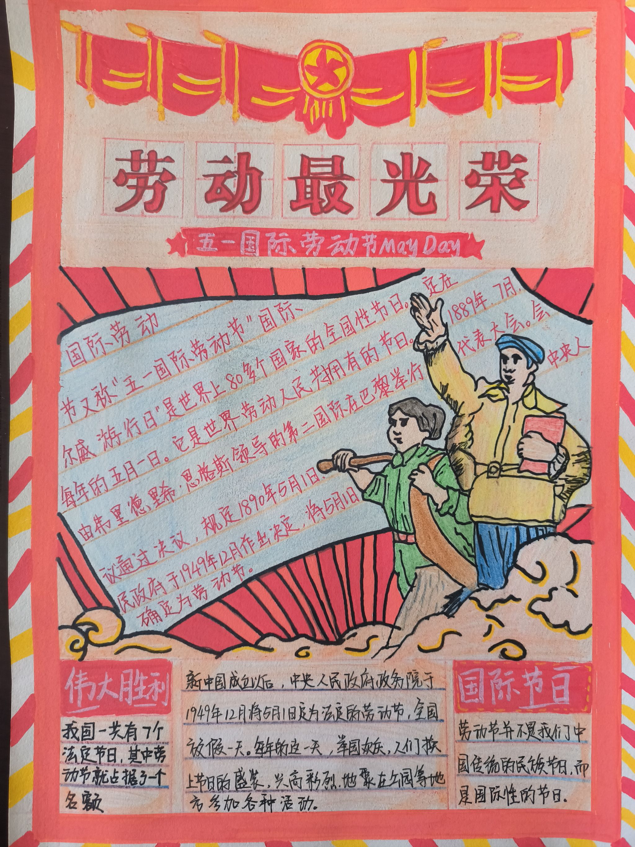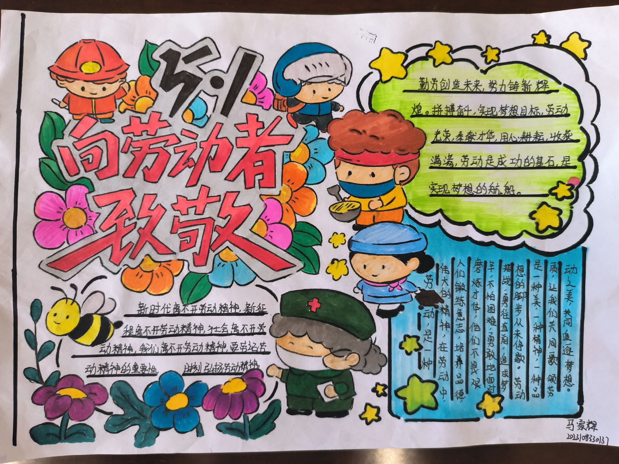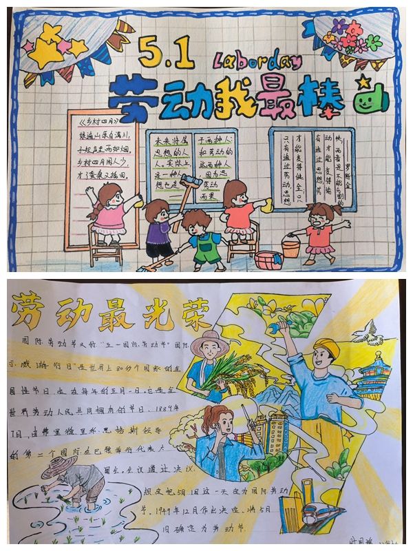 活动过程中,学生们充分发挥创意,围绕活动主题,通过搜集素材、构思设计、动手制作,创作出了一幅幅富有创意和个性的手抄报。他们以饱满的热情投入到手抄报的制作中,将劳动教育与艺术创作相结合,展现了劳动创造美好生活的幸福图景。经过他们手中的笔墨,一幅幅精美的手抄报呈现在大家面前,主题鲜明、图文并茂,内容形式多样、丰富多彩,不仅展示了学生们的创作能力,更传递出他们对劳动者的尊敬和感激之情。