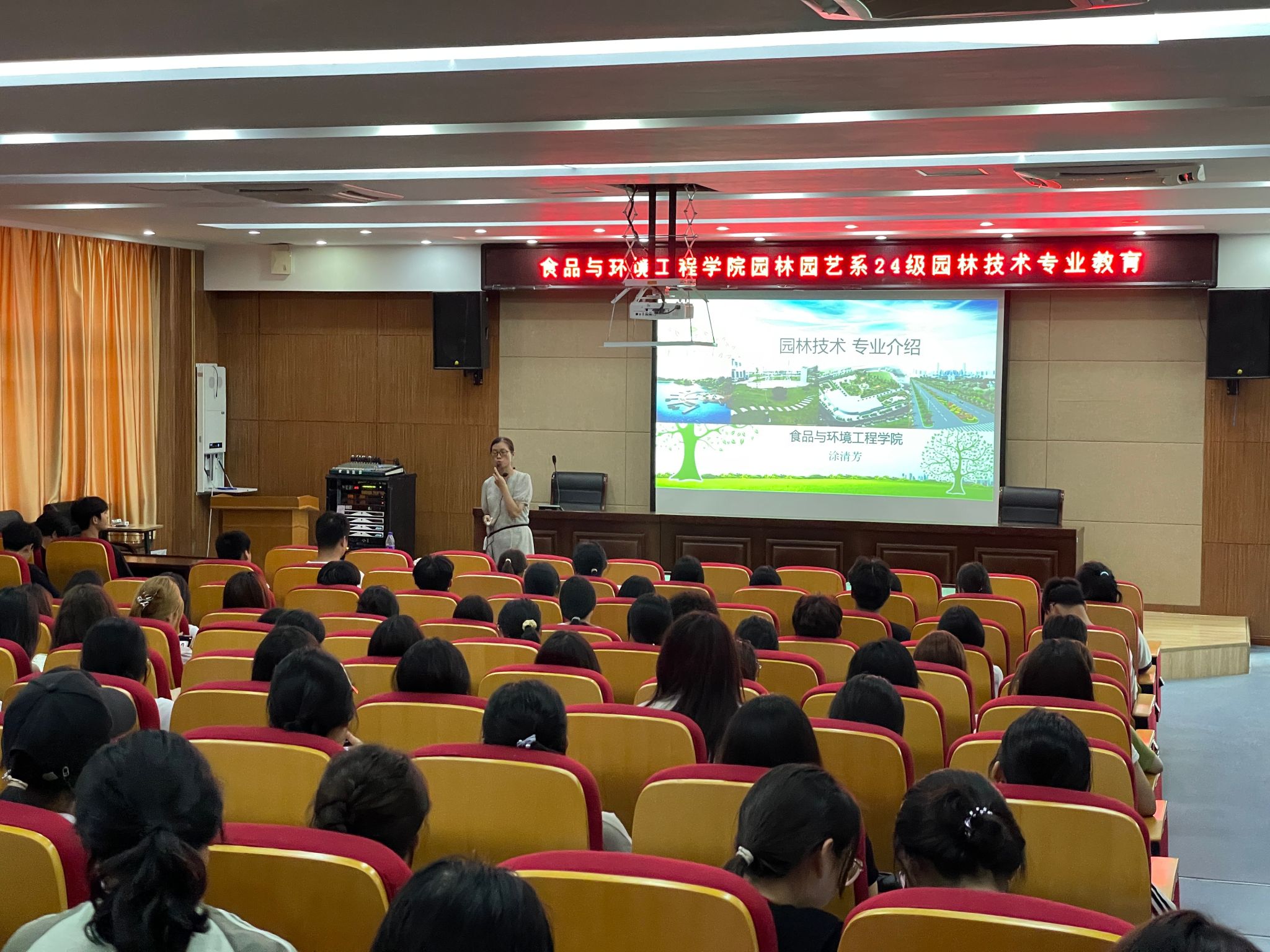 为帮助2024级园林技术专业新生深入理解所学专业的内涵与价值,明确学习目标,更好地适应大学生活,9月19日下午16:00在南阶205报告厅召开了园林技术专业新生专业介绍会。介绍会由专业负责人涂清芳老师主持,食品与环境工程学院院长梁建军及相关专业教师参加。