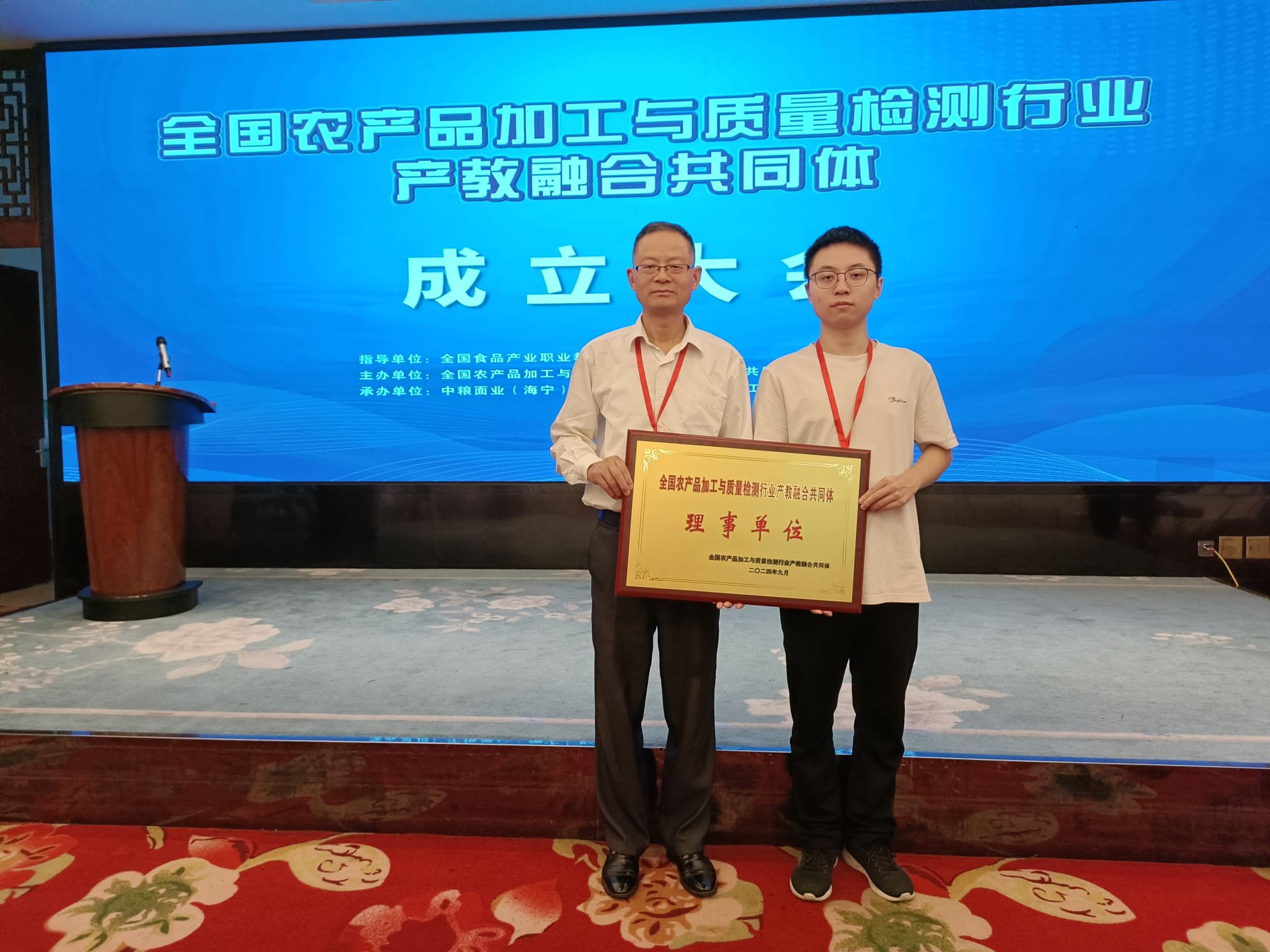 为深入贯彻党的二十大和二十届三中全会精神以及习近平总书记关于职业教育工作的重要指示、批示精神,持续深化现代职业教育体系建设改革,以职业教育“一体两翼”为任务导向,进一步推动教育、产业、行业、科技全要素提质升级,赋能农产品加工和检测行业高质量发展,构建协同育人新生态,9月23日,食品与环境工程学院院长梁建军和教师刘远帆赴江苏省句容市参加全国农产品加工与质量检测行业产教融合共同体成立大会。共同体由中粮面业(海宁)有限公司,江苏大学,江苏农林职业技术学院牵头组建。成立大会上,beat365在线唯一官网当选为理事单位。
