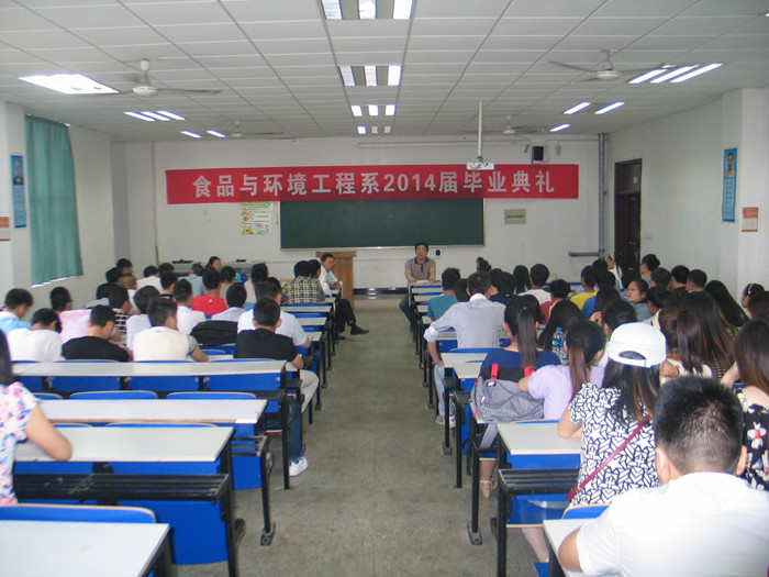 2014年7月3日上午,食品与环境工程系举行2014届学生毕业典礼,系党总支书记陈震、副主任梁建军、毕业班辅导员与全体毕业生近200人参加了典礼。