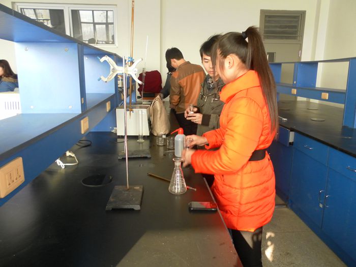 本次技能大赛主要是面向生化系绿色食品专业的学生。比赛的内容为酱油中食盐含量的测定,每组参赛选手需在规定时间内按照给定的仪器和试剂完成检验项目。为了顺利完成此次技能大赛,绿色食品教研室教师提前进行了比赛方案确定、动员组织、实验室准备等大量工作,参赛学生也都非常认真的对待此次技能大赛。