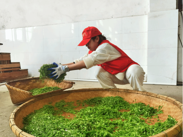 看到同学们上手快,茶场主人高兴的连连称赞。近这几天天气晴好,茶芽生长速度加快,鲜叶得不到及时采摘不仅影响当季的收入,还会影响下一季茶叶的生长。志愿者们的到来解了茶农的燃眉之急!