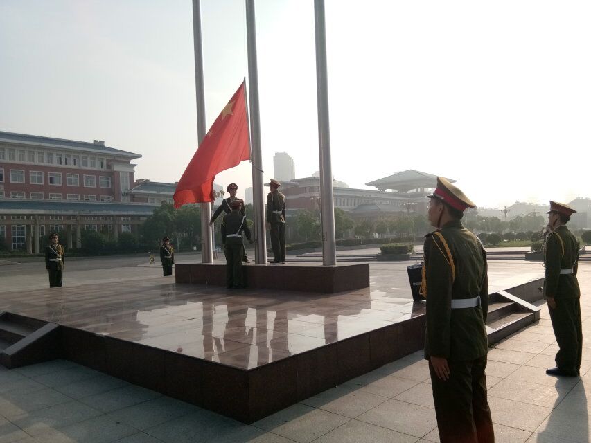 本次升旗仪式分为两项议程。第一项议程,升国旗奏国歌。伴着雄壮的国歌声,迎着初升的朝阳,五星红旗徐徐上升,全体学生行注目礼。第二项议程,由我系代表刘娜同学做国旗下讲话,其主题是“贯彻四进四信,凝聚青年力量”。刘娜发言中提到:作为大学生,我们应该认真的把习近平总书记提出的“四进四信”讲话精神与平时的学习和工作相联系,积极自觉的用讲话精神武装自己的头脑,学习宣传贯彻习近平系列重要讲话精神。