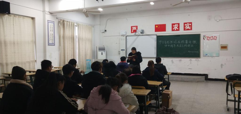 12月20日-26日,食环系通过入党积极分子党课和学生干部会议等形式,组织系部青年学子学习习近平总书记在庆祝改革开放四十周年大会上的重要讲话。