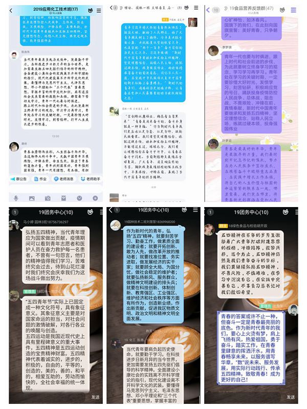 活动中,团总支副书记带领各班团支部认真学习了习近平总书记五四寄语的核心要义。同时,广大团员青年们利用网络平台对寄语精神展开热烈探讨,积极表达自己的感悟和想法。其中,19级各班团支书组织本班团员开展线上讨论。纷纷表示,定将牢记总书记嘱托,牢记使命担当,在实践中练就过硬本领,锤炼品德修为,真正把习近平总书记对新时代青年的寄语精神内化于心、外化于行。