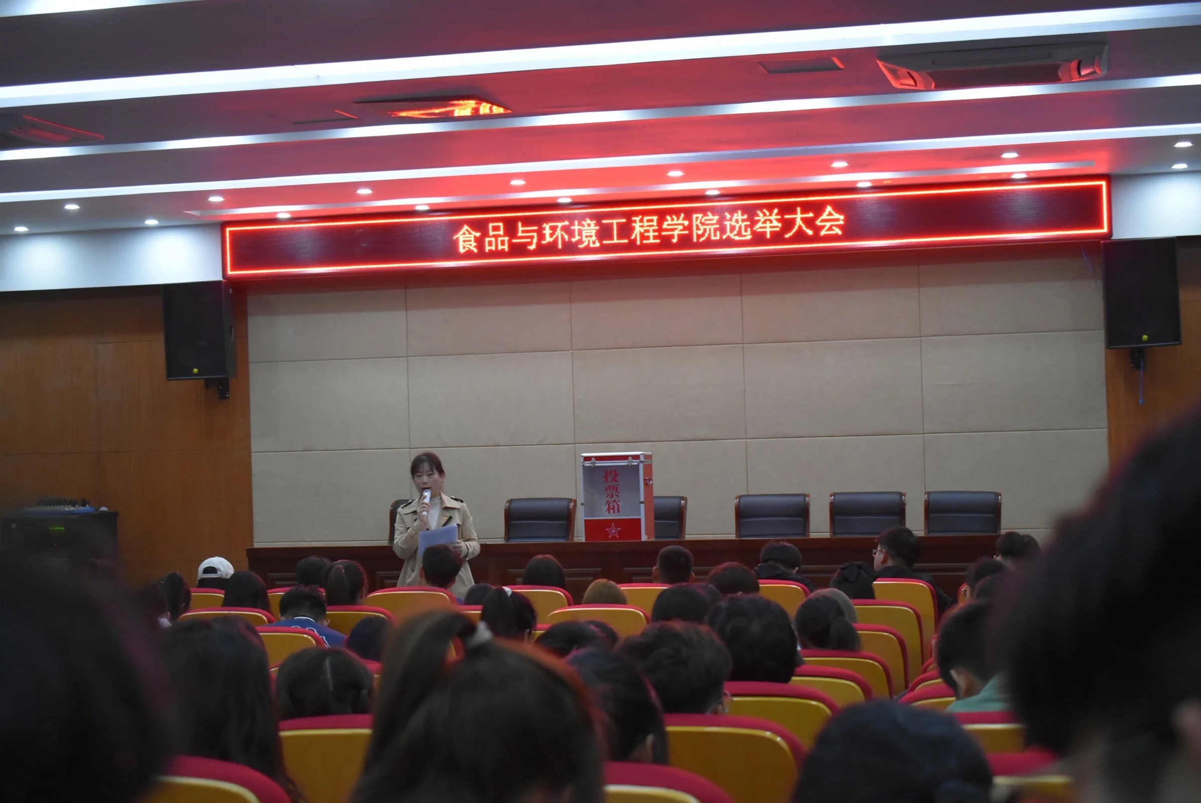 11月18日晚,食品与环境工程学院在南阶205召开beat365在线唯一官网第二次学代会学生代表选举大会。我院团总支指导老师李瑞瑞和100名各班学生代表及12名代表候选人参加了此次大会。大会由院学生会副主席纪雨馨主持。