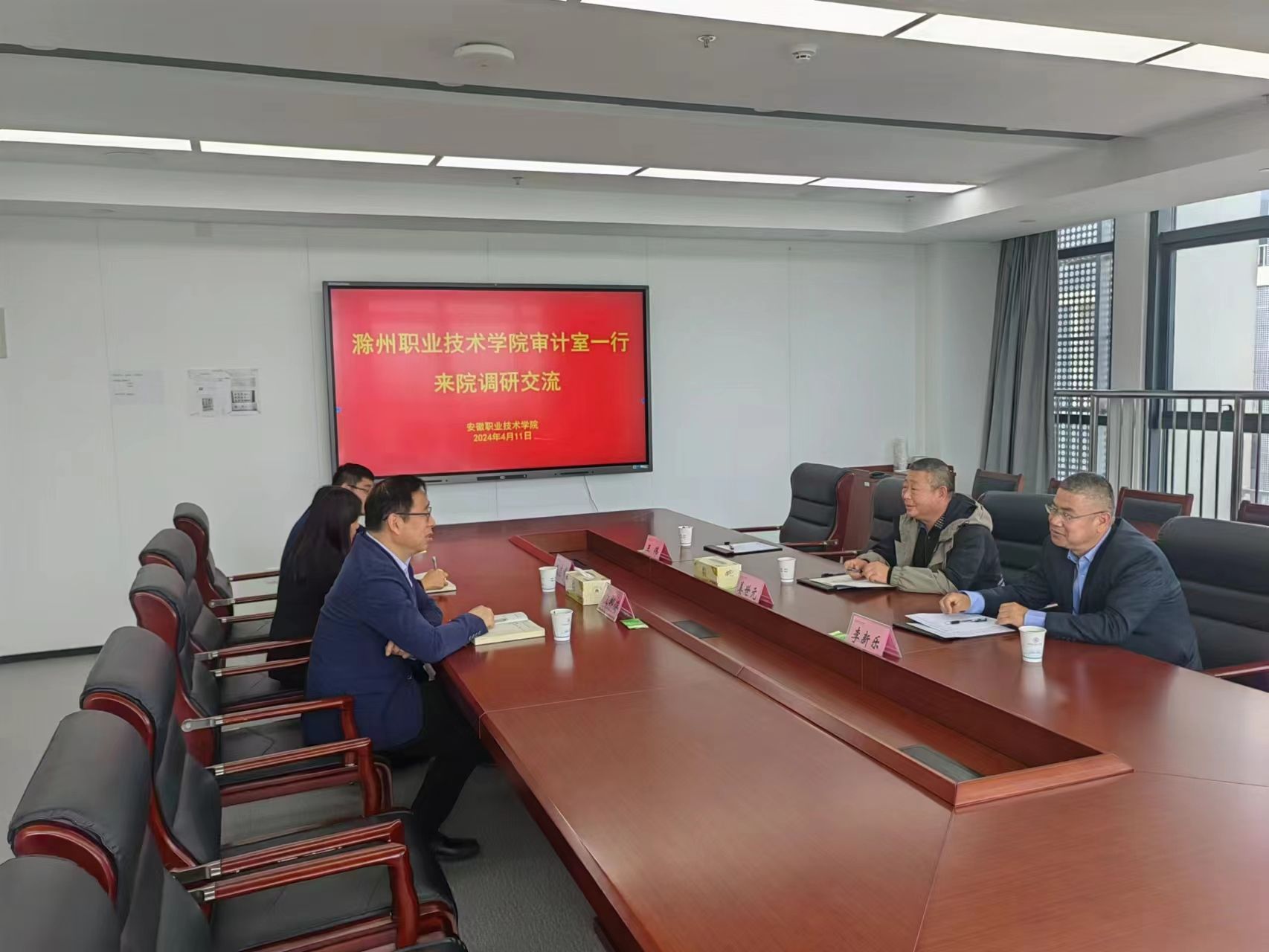 2024年4月11日上午,为落实学校“双对标”要求,审计室一行2人到安徽职业技术学院审计处考察学习,并受到审计处处长汪邦海等同志的热情热情接待。汪处长详细介绍了安徽职业技术学院审计处的一些工作方法和想法,审计室主任姜世元也谈了一些beat365审计室的工作方法,两个学校审计部门的同志进行了亲切友好地交流。