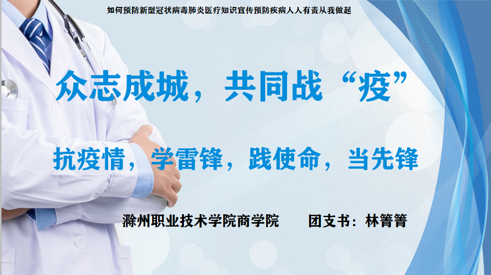 本次主题微团课由我院18电子商务四班团支部书记林箐箐主讲,团课分别由“新型冠状病毒肺炎的健康科普小知识、如何预防新型冠状病毒肺炎、疫情防控,青春同行、我们能为疫情做些什么贡献”四个部分组成。首先让大家了解新型冠状病毒肺炎的有关知识。其次,介绍了疫情的主要方法。随后,分享了共青团员在疫情中所做的贡献。最后,号召各位共青团员在疫情期间贡献出自己的力量。微团课推出后,掀起了学习热潮,团学青年们纷纷表示:“疫情当前,我们每个人都要将‘国’装在心里,听从号召,做一个有责任心的中国人,做一个有担当的大学生!”
