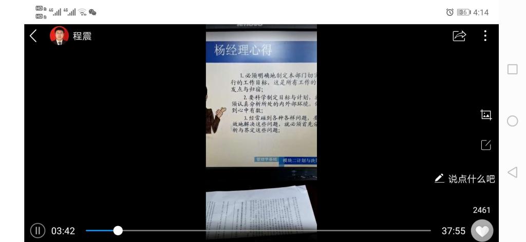 这里以程震副院长主讲的《管理学》直播课程为例,为保障直接教学顺利完,针对社招学生的知识构成与学习特点,课程之前进行了充分的教学资源准备,教案和课程PPT的修订和完善,补充整理了案例视频资料、给学生发放电子教材、准备实训资料、扩充题库等工作。