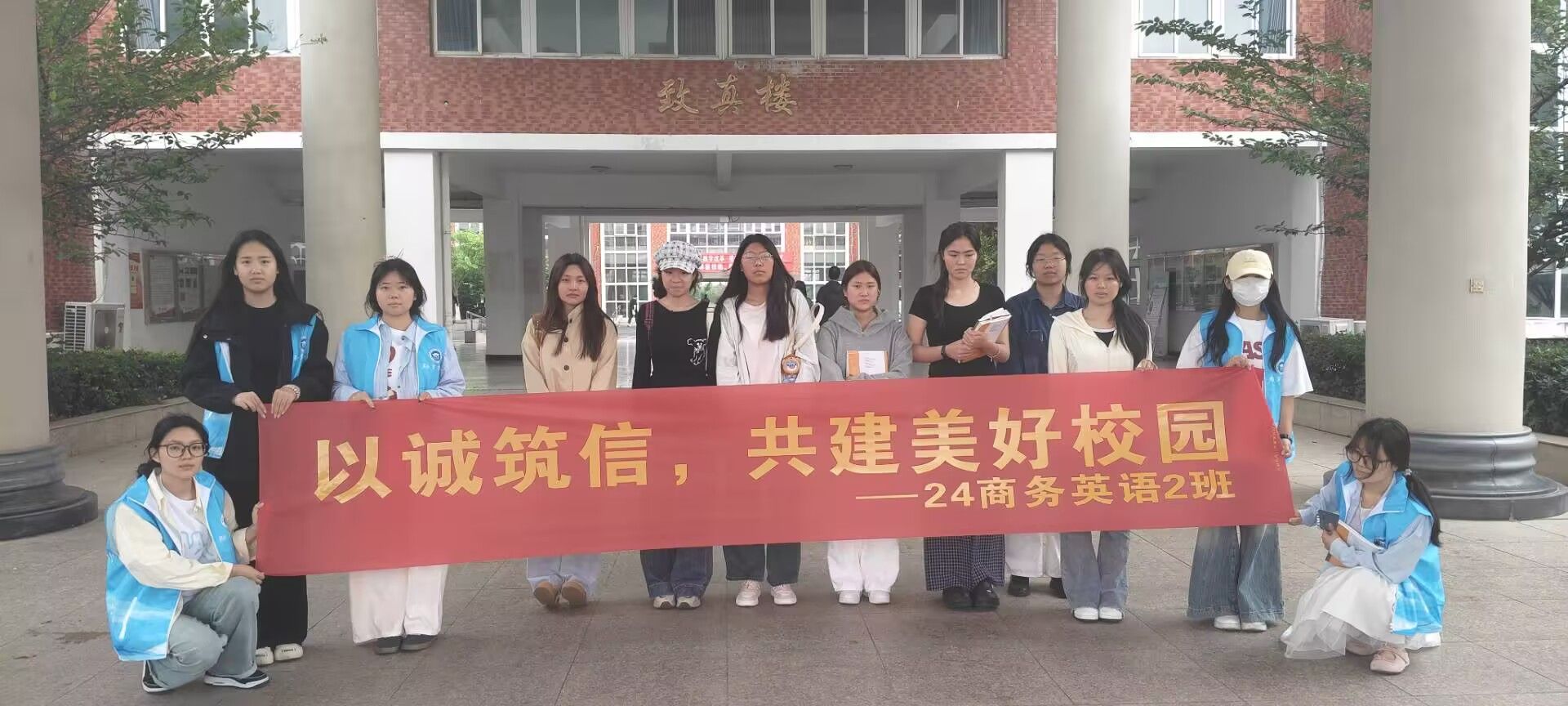 为弘扬诚实守信的传统美德,营造风清气正的校园氛围,商学院24级商英2班在2025年5月23日举办了“以诚筑信,共建美好校园”主题志愿活动。此次活动由班委牵头组织,吸引了班级众多志愿者踊跃参与,通过形式多样的活动,让诚信之花在校园处处绽放。