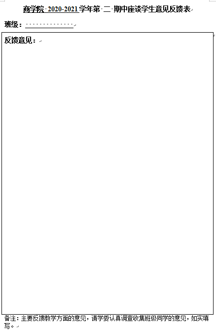 商学院 2020-2021学年第 二 期中座谈学生意见反馈表