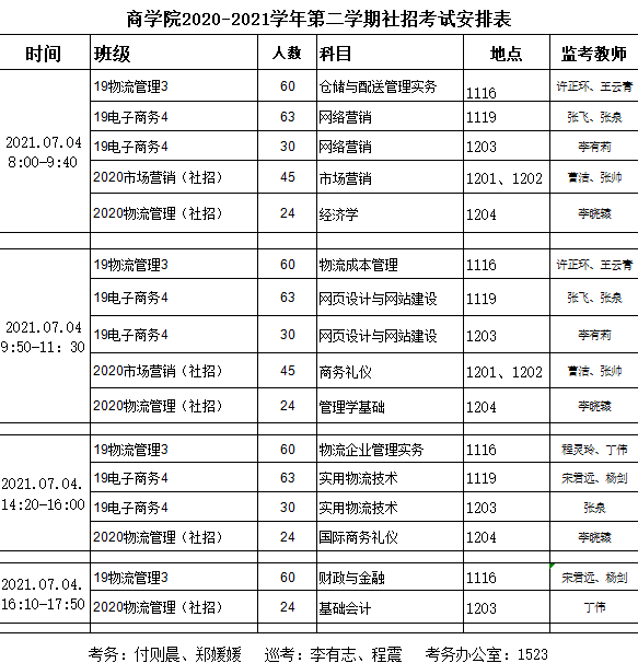 商学院: 社招2020-2021学年第二学期考试安排表