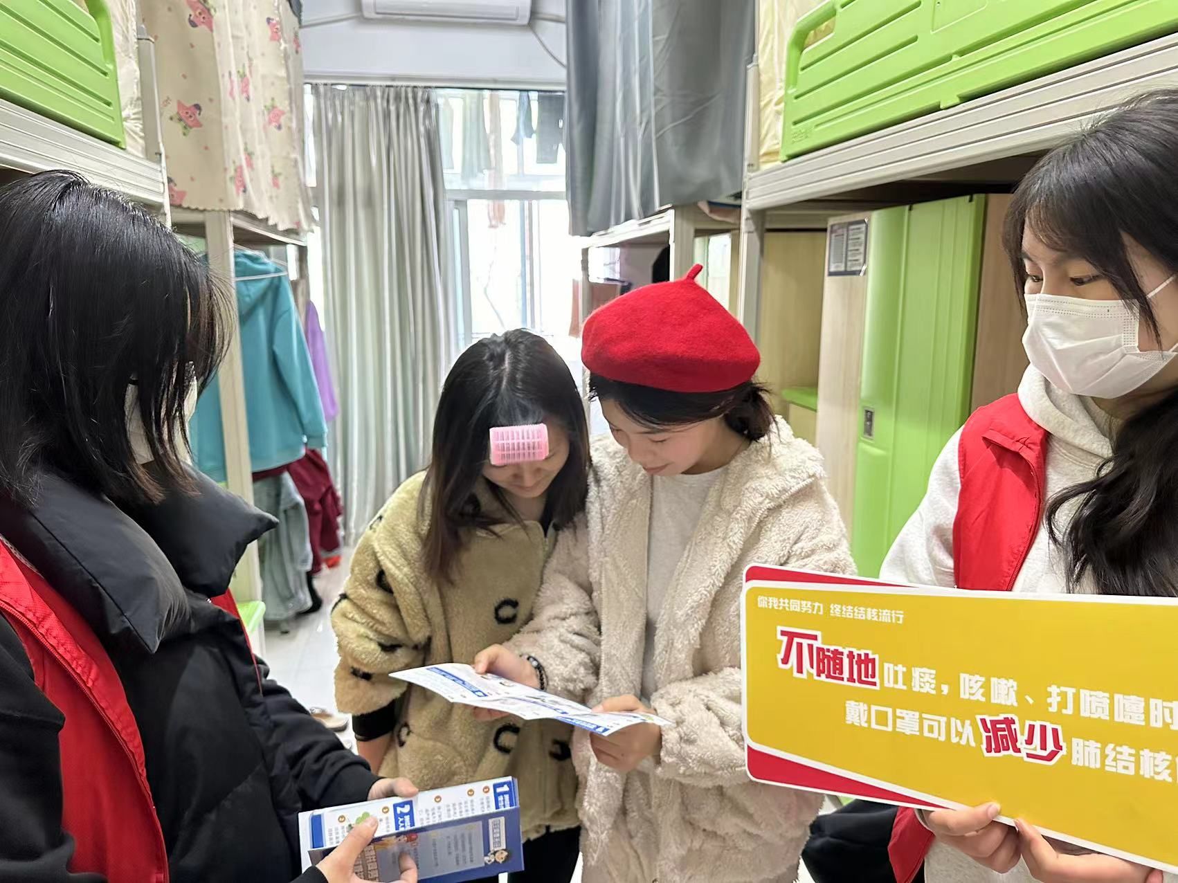 结核病是仅次于新型冠状病毒感染的世界第二大单一传染源死因,是全球关注的重大公共卫生问题之一。春期各种疾病多发,学校人员密集,商学院学生会积极配合学院工作,通过发放宣传手册,面对面的结核病防治知识宣讲,邀请寝室中的同学和宣传展板来一次亲密的合影,让同学们进一步的交了解到了结核病的知识,真正落实“防控结核,人人有责”