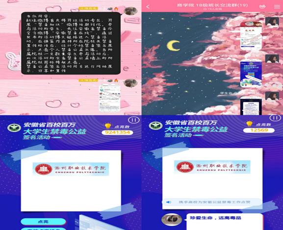 百万大学生禁毒公益签名活动通过新浪微博开展,商学院全体同学秉承着为母校增光,为大学添彩的原则。在班长的组织带领下,每日都积极主动为母校点亮,争取校徽在全省禁毒公益墙上的排名越来越高,为禁毒事业贡献出自己的力量。此次签名活动,大力弘扬禁毒公益人人参与的精神,进一步增强同学们参与禁毒斗争的责任感、使命感,营造出了浓厚的禁毒宣传教育氛围。