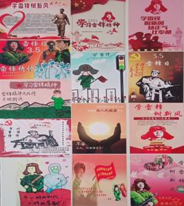 活动过程中,同学们积极参与,以丰富多彩、图文并茂的形式在手抄报和海报上展示了学雷锋、讲文明等宣传内容,同学们把对雷锋的崇敬和怀念之情深深融入到创作之中。手抄报追述了雷锋同志的光辉事迹,赞扬了他的“钉子”精神,歌颂了他全心全意为人民服务的品质。各班设计的板报均新颖独特,既弘扬了雷锋精神,又展现其时代内涵。